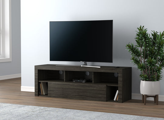 59" TV Stand Dark Grey 1 Drawer 5 Shelves