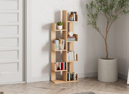 57" Wall Shelf Oak Look 8 Open Shelves Modern Vertical Organizer