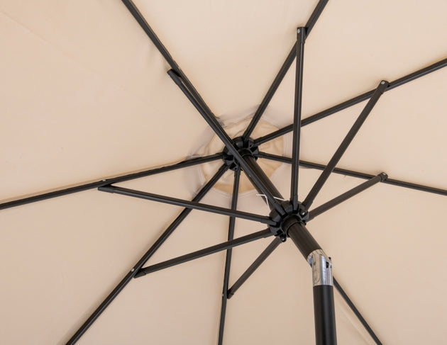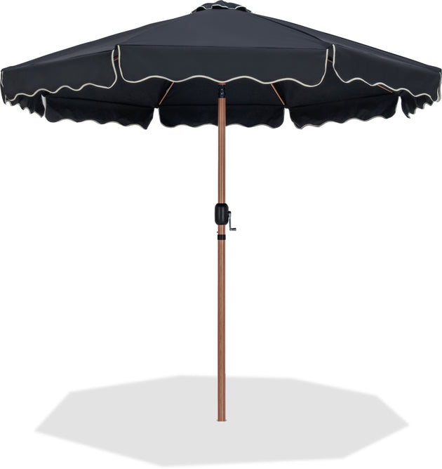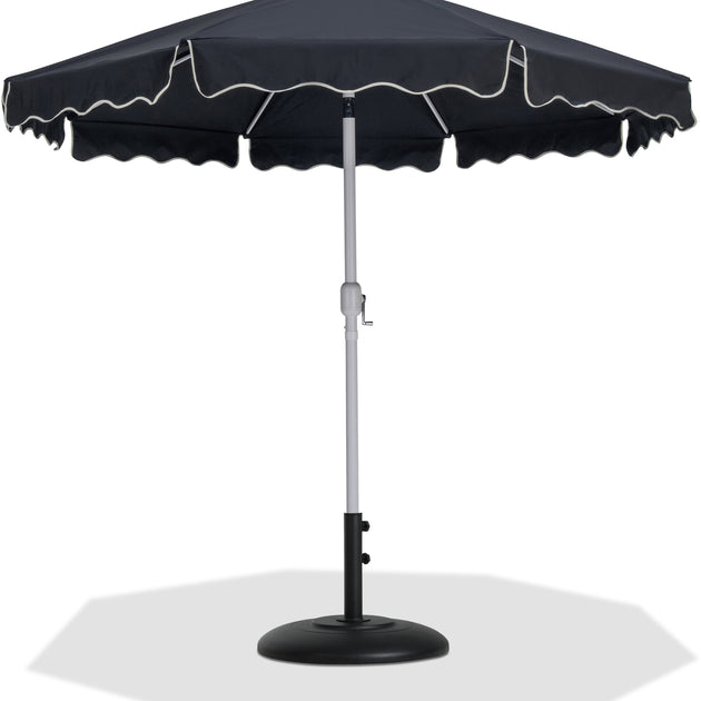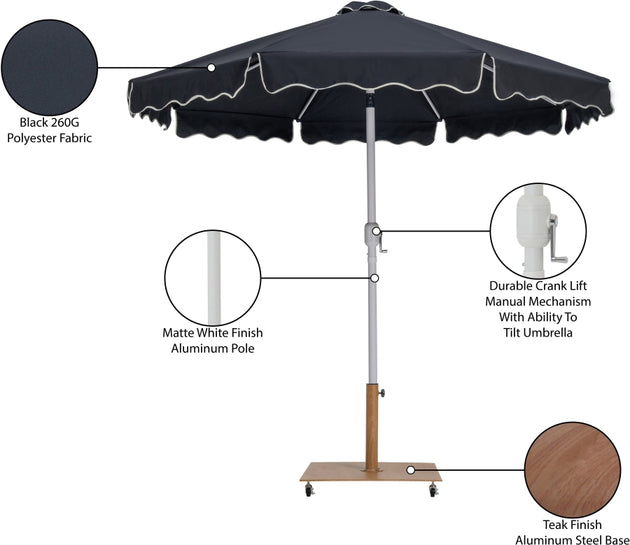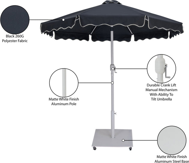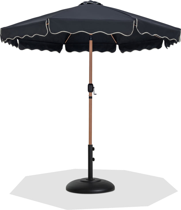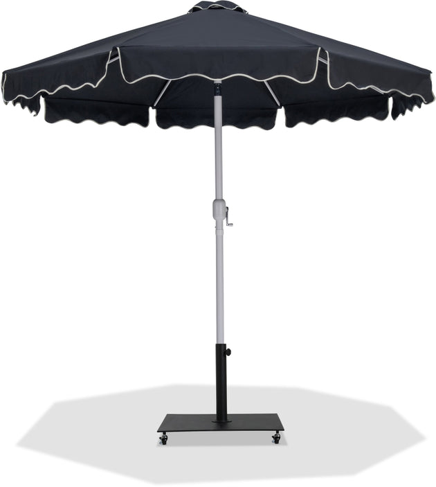 Amalfi Fabric With Cream Piping / Matte Black Aluminum Patio Umbrella with Base Sets