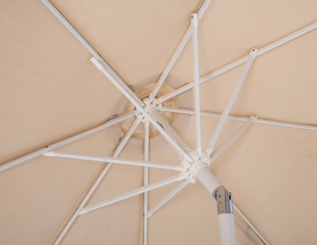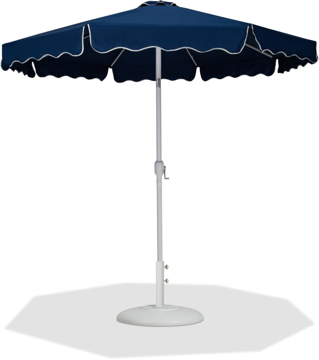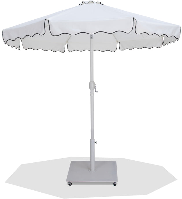 Amalfi Fabric With Cream Piping / Matte White Aluminum Patio Umbrella with Base Sets