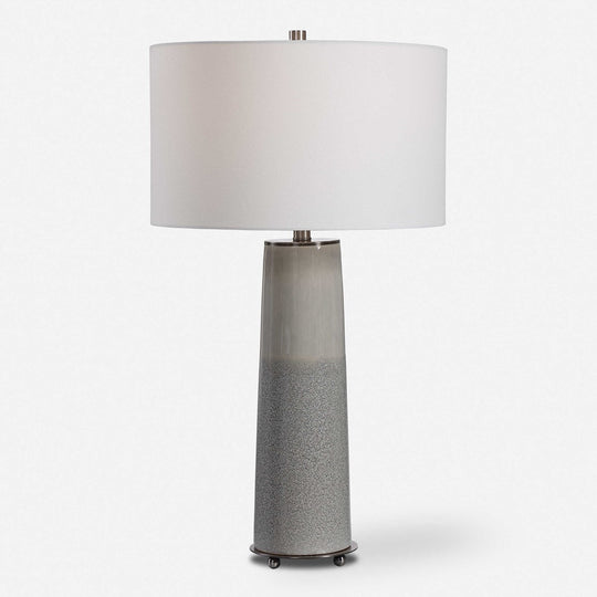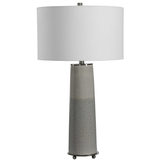 SALE                     Abdel Table Lamp Sleek and contemporary, this ceramic table lamp showcases a two-tone light gray glaze with a gloss sheen top half and a textured bottom half, complemented by gunmetal plated accents. An off-white fabric drum shade completes the...Sale price $419.00Regular price $699.00Sale price $419.00Regular price $699.00
