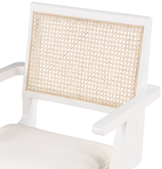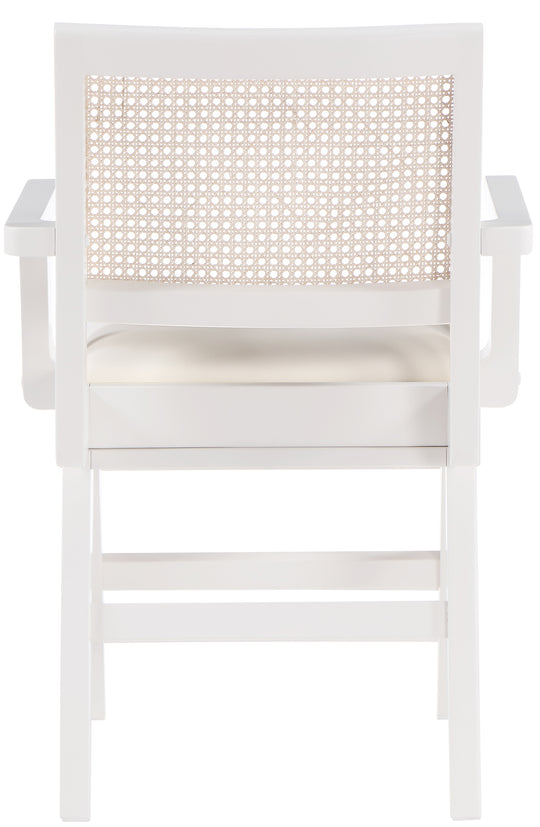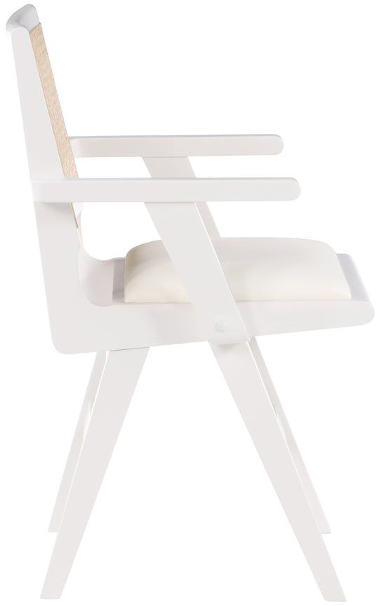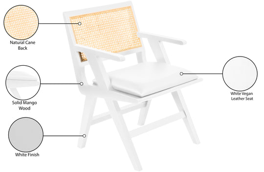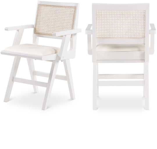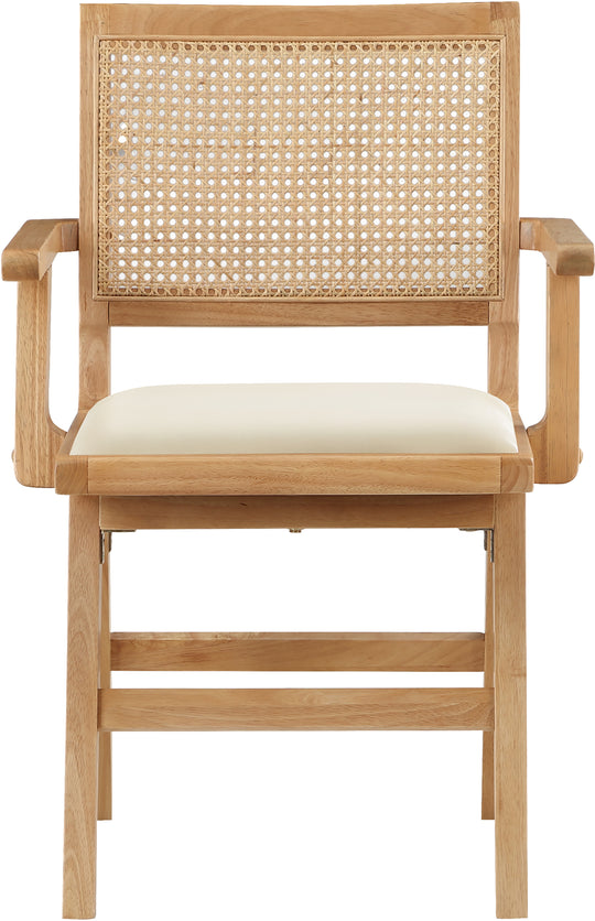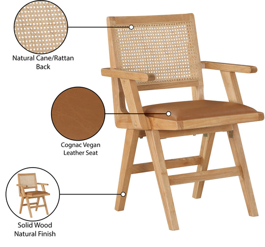 SALE                                             Abby Vegan Leather Dining Arm Chair Sit back and relax in this armchair from Meridian Furniture's Abby collection. Featuring a frame crafted from solid wood with a natural finish and a cognac vegan leather seat, this chair is both sturdy and durable...Sale price $435.00Regular price $580.00Sale price $435.00Regular price $580.00