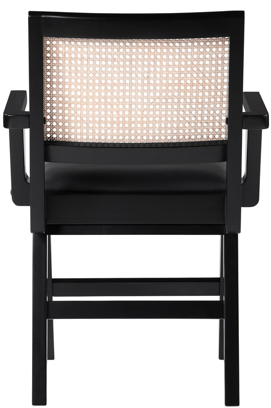 SALE                                                             Abby Vegan Leather Dining Arm Chair Sit back and relax in this arm chair from Meridian Furniture's Abby collection. Featuring a frame crafted from solid mango wood with a black finish and black vegan leather seat, this chair is both sturdy and...Sale price $435.00Regular price $580.00Sale price $435.00Regular price $580.00