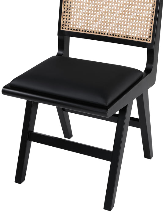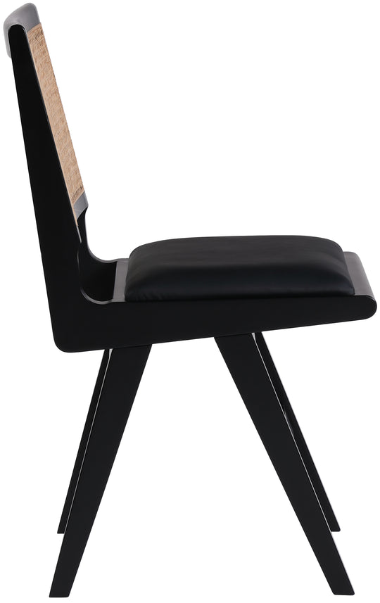 SALE                                                                 Abby Vegan Leather Dining Side Chair Sit back and relax in this arm chair from Meridian Furniture's Abby collection. Featuring a frame crafted from solid mango wood with a black finish and black vegan leather seat, this chair is both sturdy and...Sale price $390.00Regular price $520.00Sale price $390.00Regular price $520.00