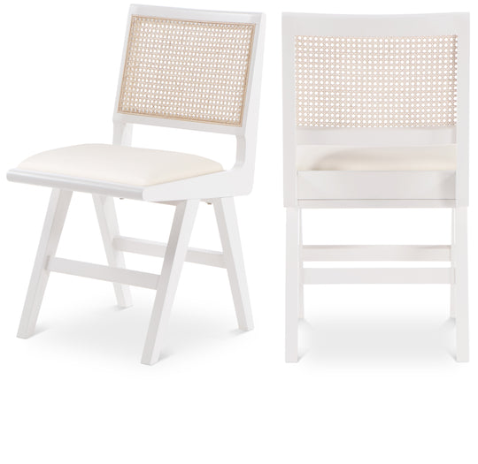 SALE                                             Abby Vegan Leather Dining Side Chair Sit back and relax in this side chair from Meridian Furniture's Abby collection. Featuring a frame crafted from solid wood with a natural finish and a cognac vegan leather seat, this chair is both sturdy and...Sale price $375.00Regular price $500.00Sale price $375.00Regular price $500.00