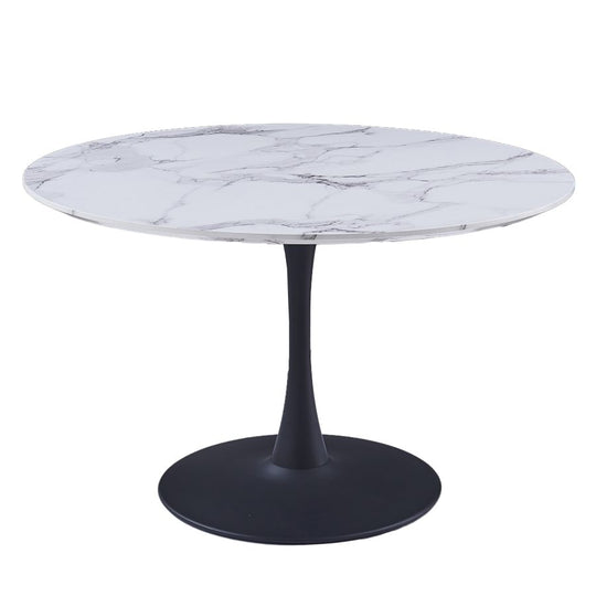 Zilo 48" Round Dining Table in White Faux Marble and Black