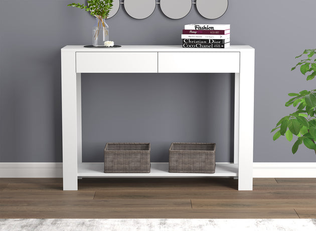 40" Boho Console Table 2 Drawers Shelf White