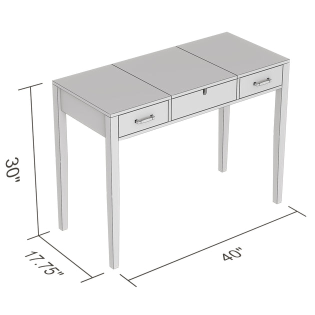 40" Vanity Console Table White 2 Drawers Foldable Mirror