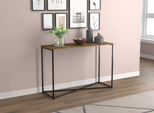 44" Console Table Brown Reclaimed Wood Black Metal Base