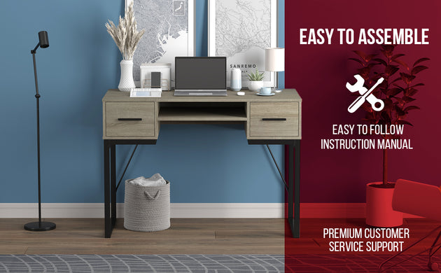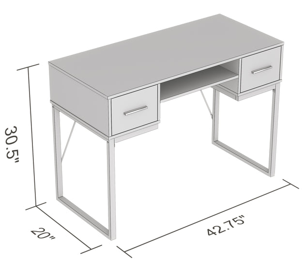 42.5" Computer Desk Dark Grey 2 Drawers 1 Shelf Black Metal Base