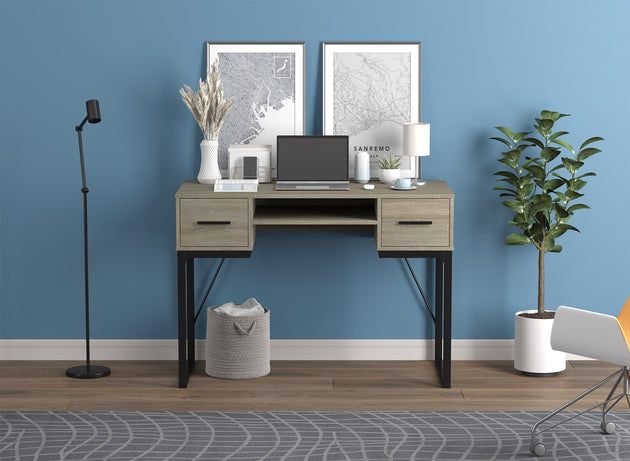 42.5" Computer Desk Dark Taupe 2 Drawers 1 Shelf Black Metal Base