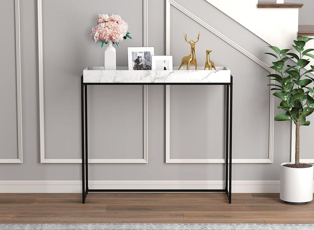39.5" Modern Console Table Sunkey Tray Marble Black Metal