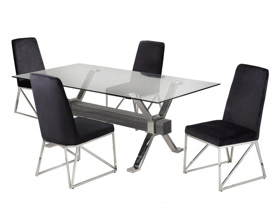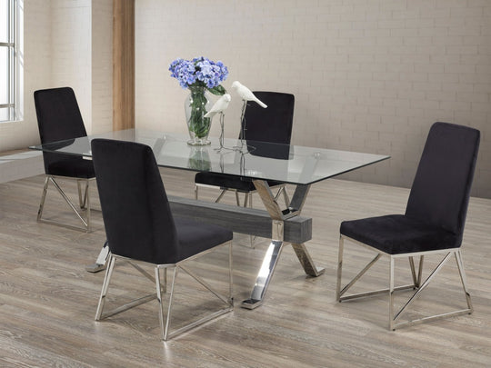 SALE         Acasia 5-Piece Dining Set - Black The undeniably chic and classy appearance of this 5-piece dining set will add a contemporary edge to your dining area. Featuring a sleek and stylish rectangular table with a tempered glass top and a unique crossbar...Sale price $1,159.00Regular price $1,999.00Sale price $1,159.00Regular price $1,999.00