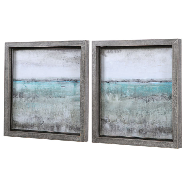 Aqua Horizon Framed Prints (Set of 2) Blue