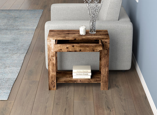 24" Classic Narrow Accent Table Brown Reclaimed Wood Hidden Storage Shelf