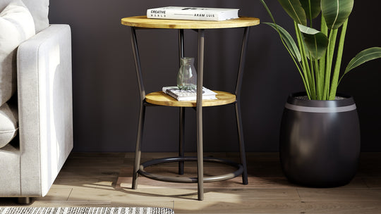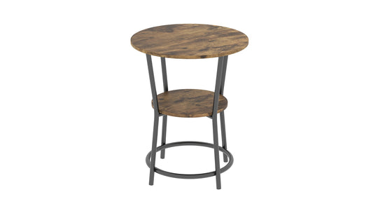 22" Round Side Table Brown Reclaimed Wood Black Metal