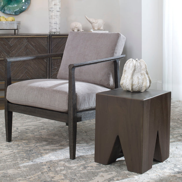Armin Solid Wood Accent Stool Brown, Dark