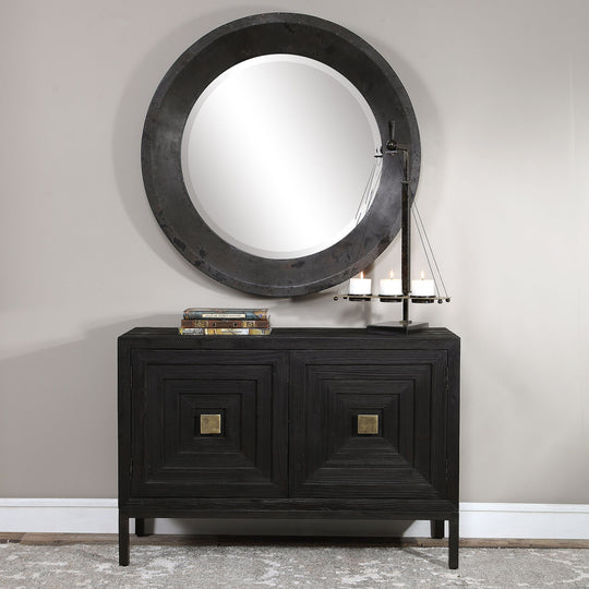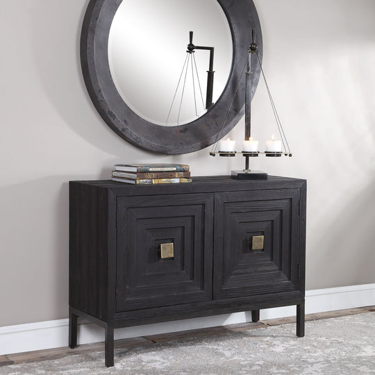 A Contemporary Geometric Two Door Accent Cabinet, Constructed From Deeply Grained Fir Wood Finished In A Dark Ebony Stain, Accented With Brushed Brass Hardware. Has One Fixed Interior Shelf.Product Features Uttermost's Furniture Combines Premium Quality Materials...Sale price $1,629.00Regular price $1,999.00Sale price $1,629.00Regular price $1,999.00 -