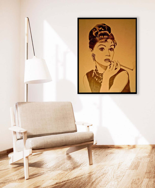 Audrey in Sepia-Wall art decor-Fine Art-Gold varnish