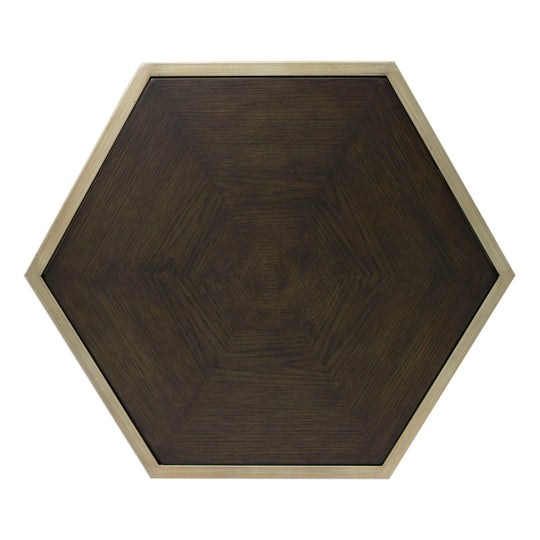 A Fun Hexagonal Accent, Perfect For Bunching In Multiples To Create A Geometric Coffee Table, Featuring A Sunburst Inlay Oak Veneer Finished In A Deep Walnut Surrounded By An Iron Frame In Brushed Champagne.Product Features Uttermost's...Sale price $599.00Regular price $899.00Sale price $599.00Regular price $899.00 -