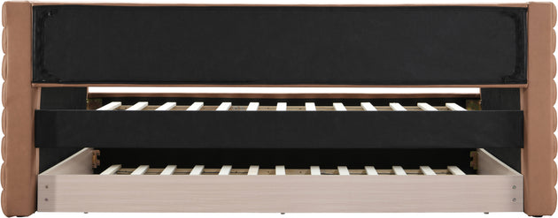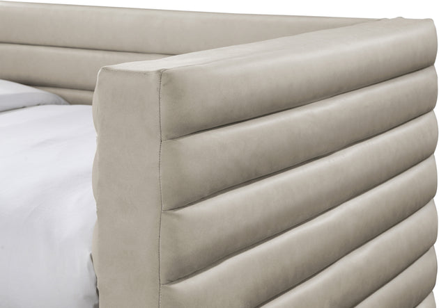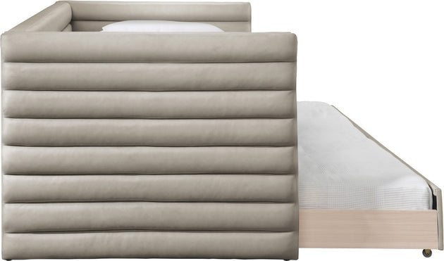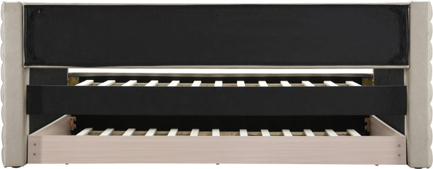 Betsy Round Storage Ottoman with Tray in Beige and Black