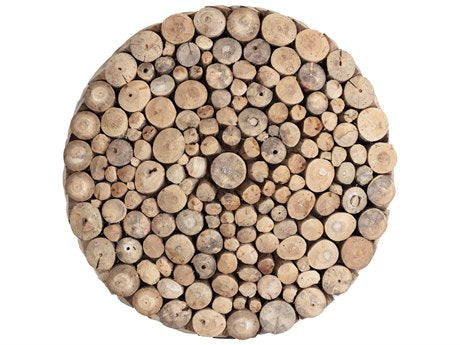 Betsy Round Storage Ottoman with Tray in Beige and Natural