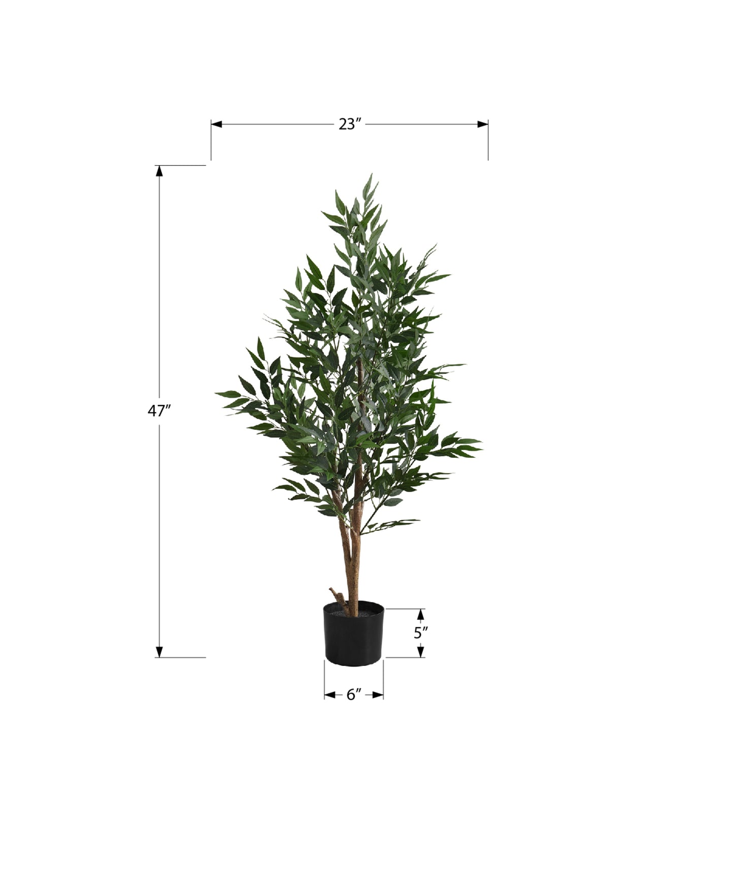 Brighten up any corner of your home or office with this 47" tall faux acacia tree in a simple and modern 5" plastic pot. This gorgeous artificial plant will bring a natural and stylish touch to your decor with 660 leaves that are adjustable for a full, realistic look. Crafted with high-quality materials, this faux tree requires no maintenance for long-lasting durability. With its elegant green silk leaves, this decorative accent adds a bright touch to your contemporary home or office. The environmentally friendly materials make it especially safe. This fake indoor acacia tree is the perfect way to bring greenery to any space, and no watering necessary!