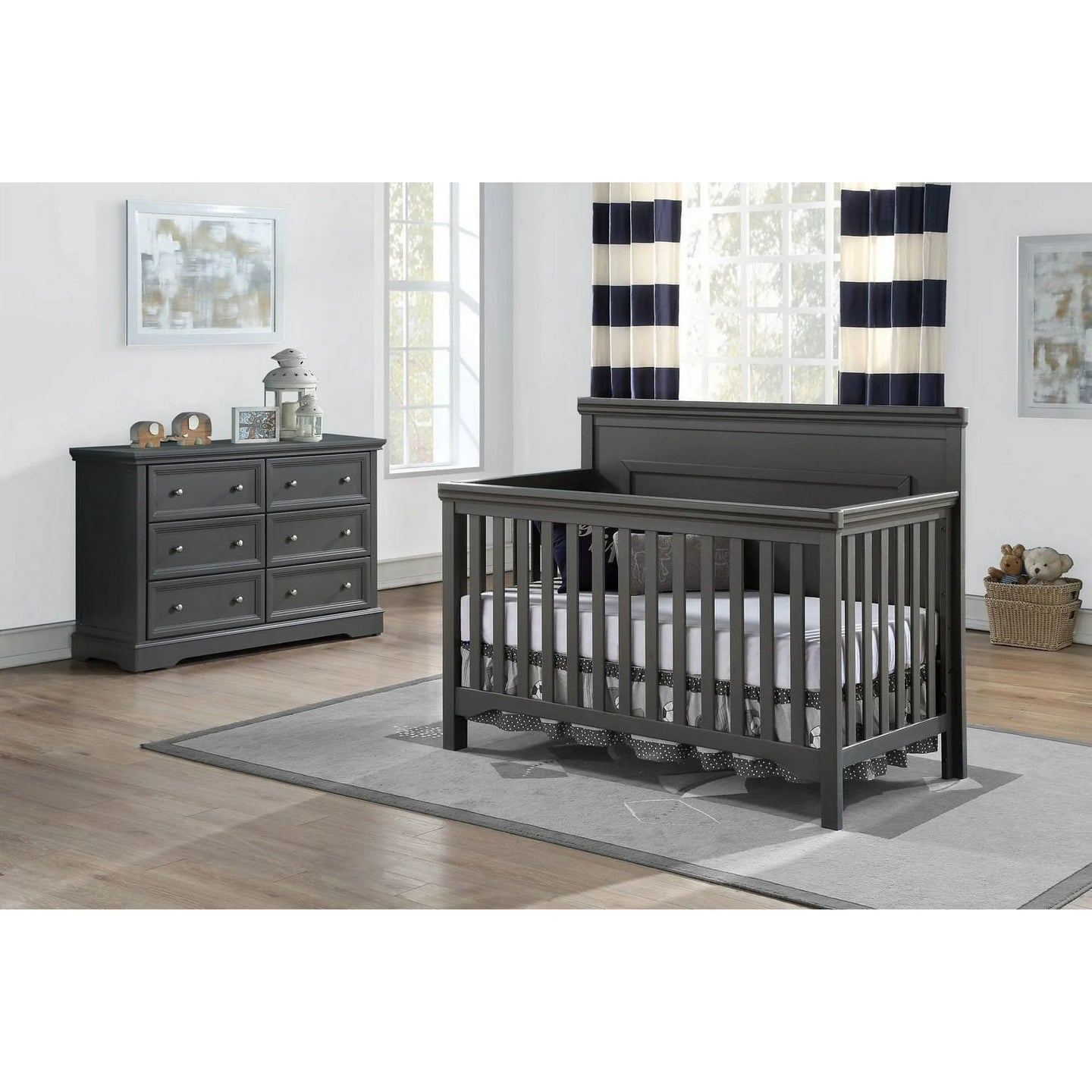 Enhance your nursery with the Haven 4-in-1 Crib by pairing it with matching dressers and a soft-tone glider for a serene, coordinated look. Add neutral bedding with soft textures and warm lighting to create a soothing environment that grows gracefully with your child. For a classic finish, decorate with framed prints, plush toys, and organic cotton linens — turning your nursery into a space that’s both beautiful and built to last.