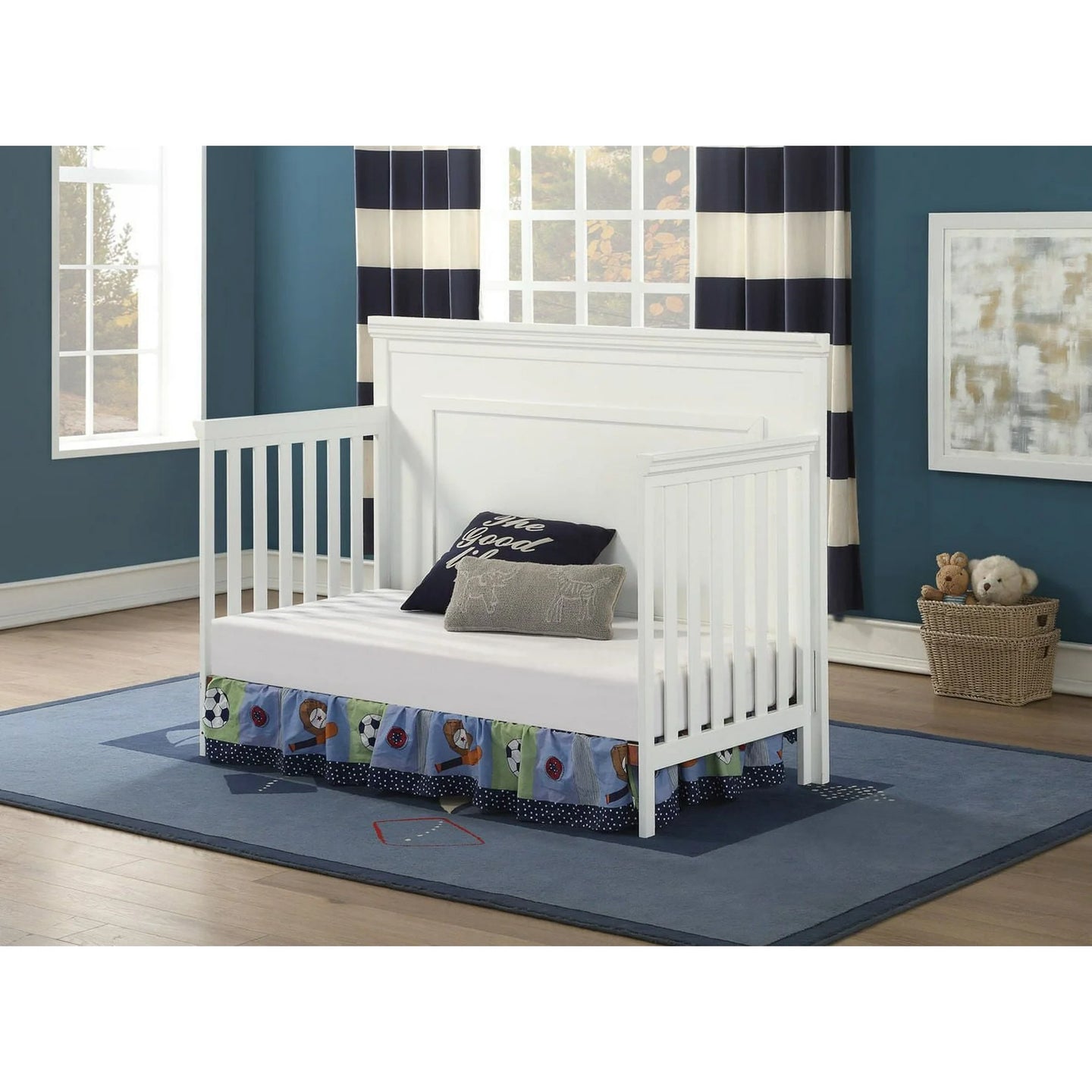 4-in-1 convertible design grows with your child: crib, toddler bed, daybed, and full-size double bed