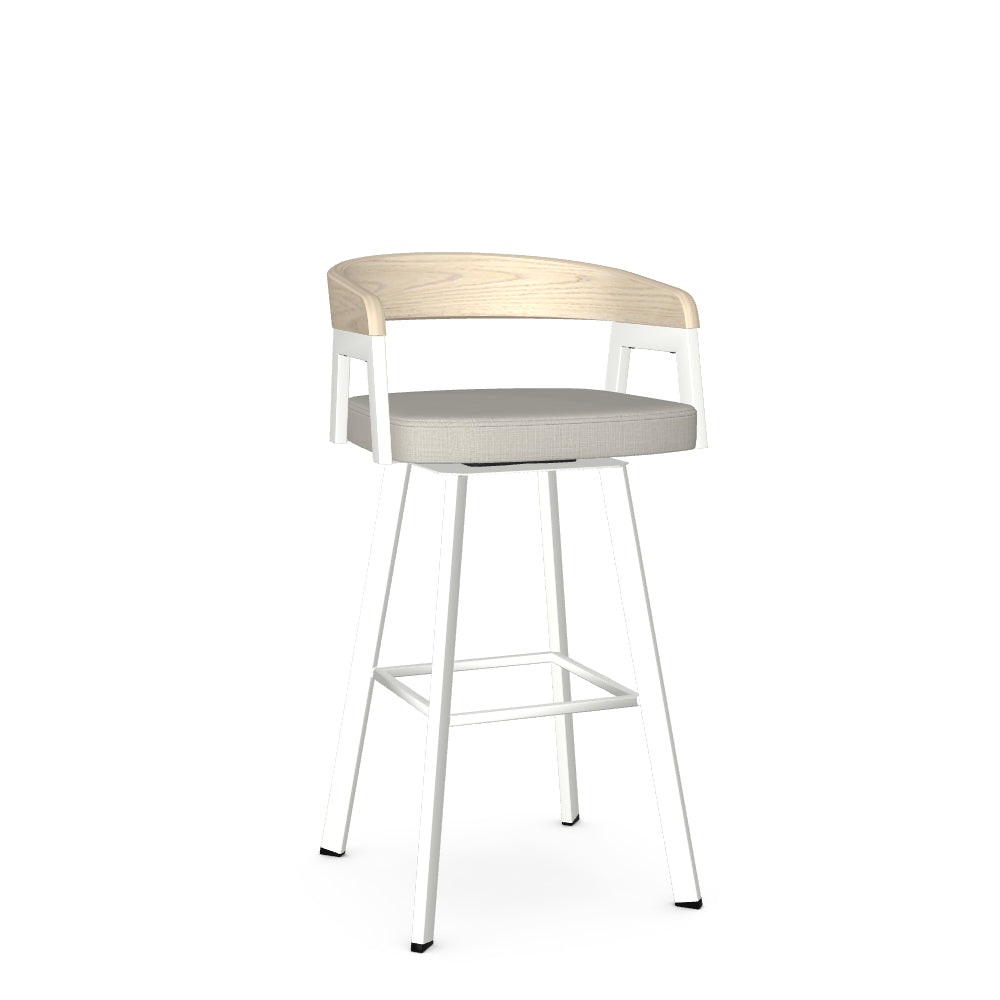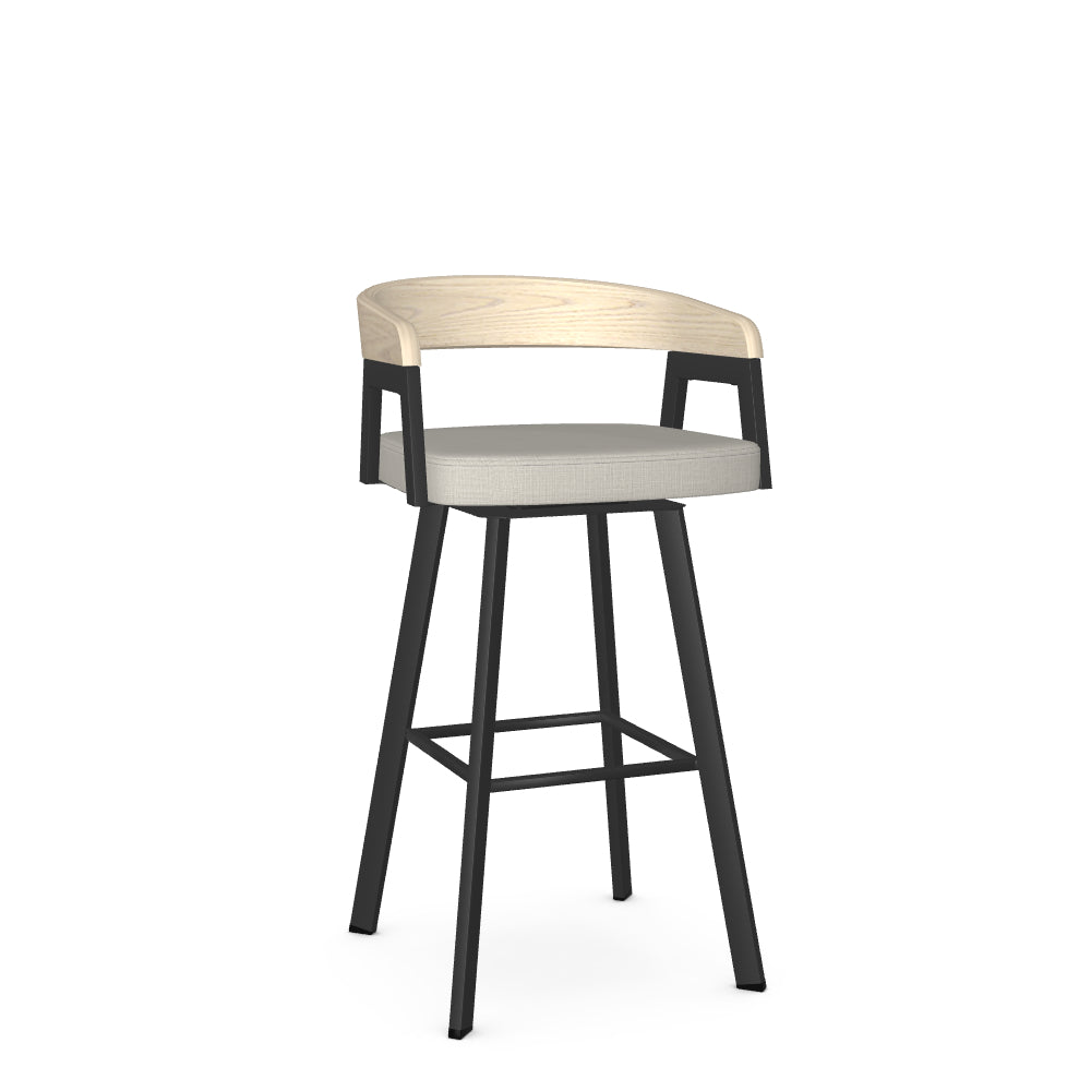 The Carmela swivel stool is a true expression of Scandinavian design. Its curved wooden backrest gracefully extends to form armrests, creating a sense of continuity and elegance. The plush upholstered seat, combined with a smooth 360-degree swivel, provides great mobility and comfort, while sleek metal legs add a touch of refinement to its overall aesthetics. A perfect balance of style and comfort, the Carmela barstool will undoubtedly enhance your living space!