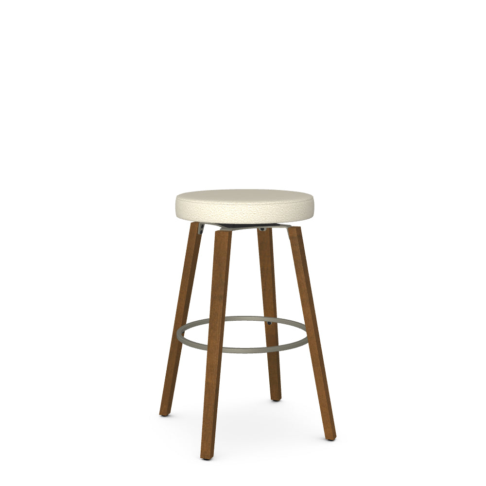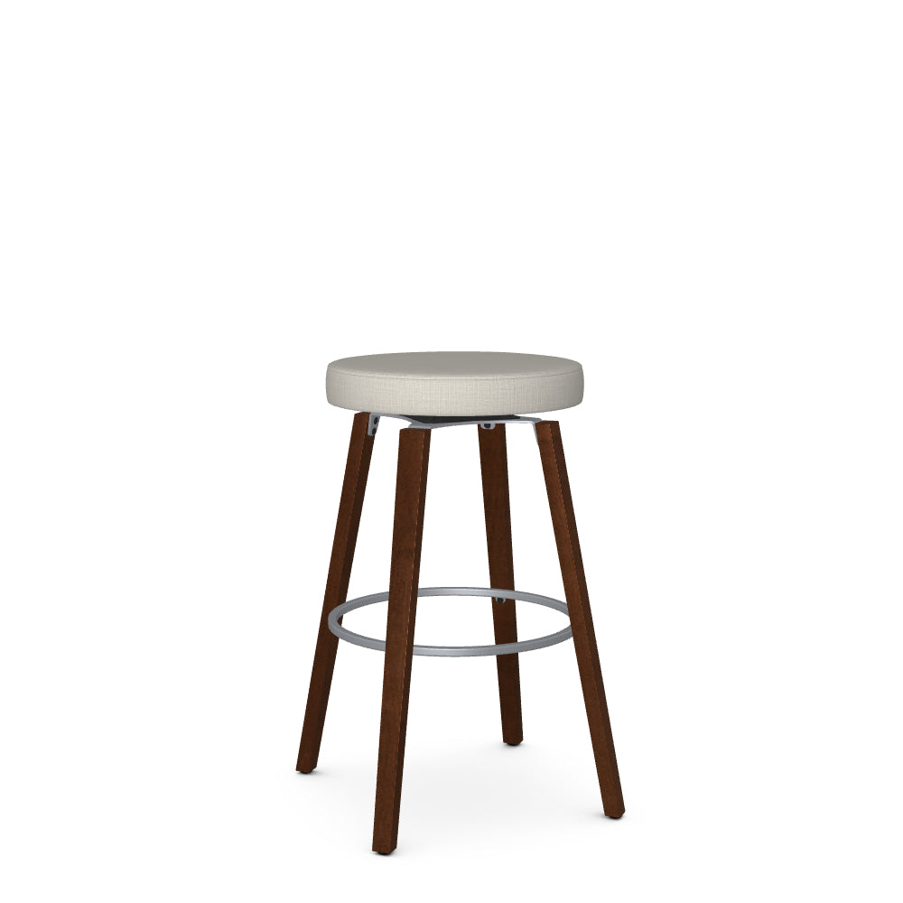 Whether you're looking to round off seating arrangements for your kitchen island, breakfast counter or bar, the Walden swivel stool makes the perfect pick for your home. Crafted with a sturdy solid wood frame with a metal footrest, this round barstool adds chic style to your space. The upholstered seat enhances comfort, while the swivel function adds ease of movement. With its backless silhouette, it is easy to move around and can be tucked under the counter to save valuable space.