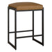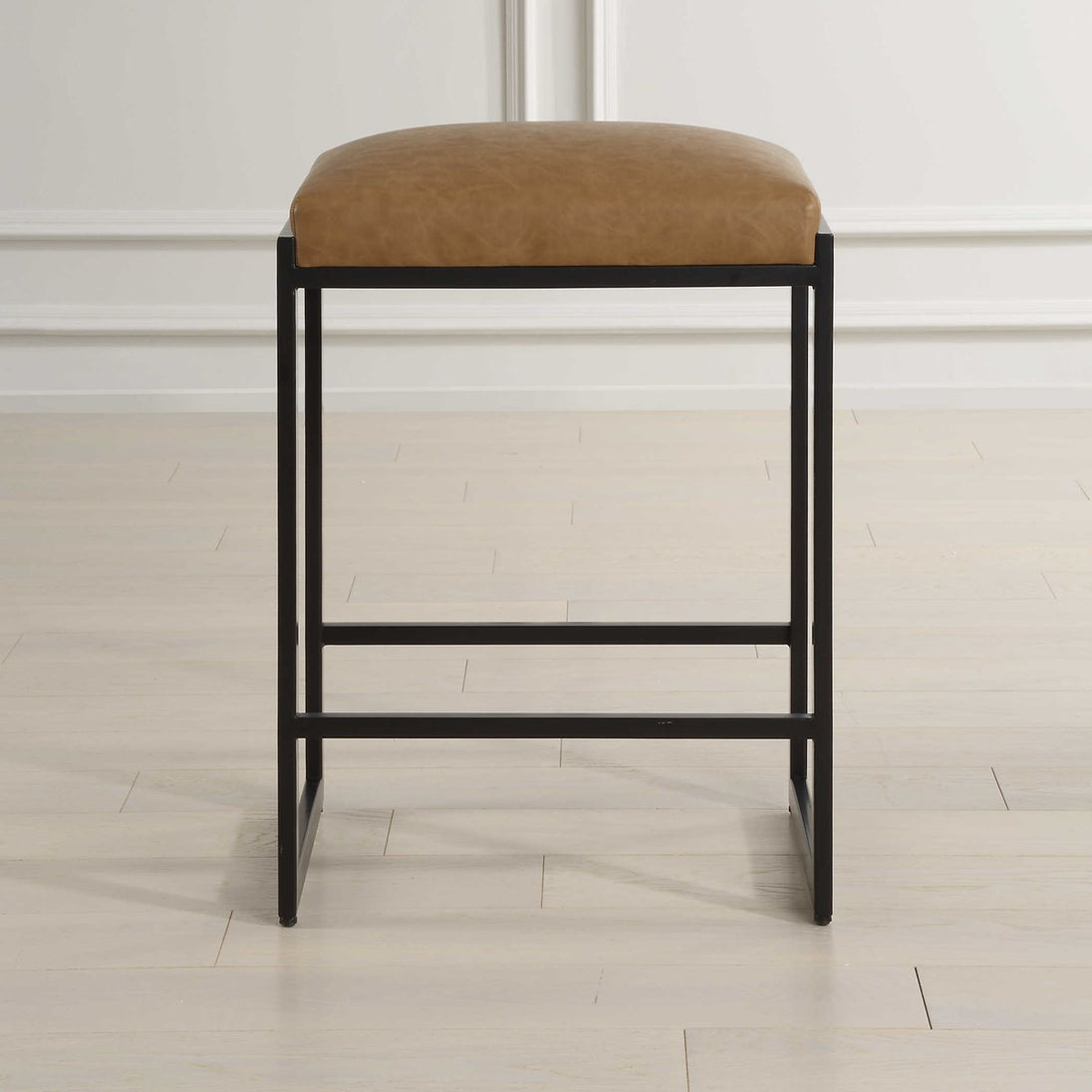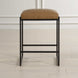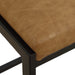 Clean contemporary lines are accented with subtle stylish details. The satin black finished iron is complemented with an inset cushion upholstered in a rich camel faux leather.