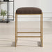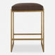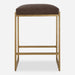 Clean contemporary lines are accented with subtle stylish details. The antique brushed brass finished iron is complemented with an inset cushion upholstered in a rich cocoa faux leather.