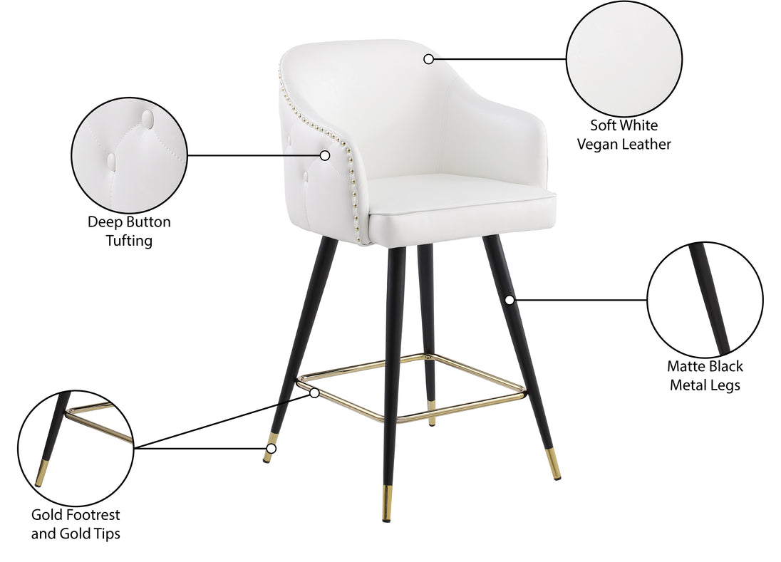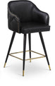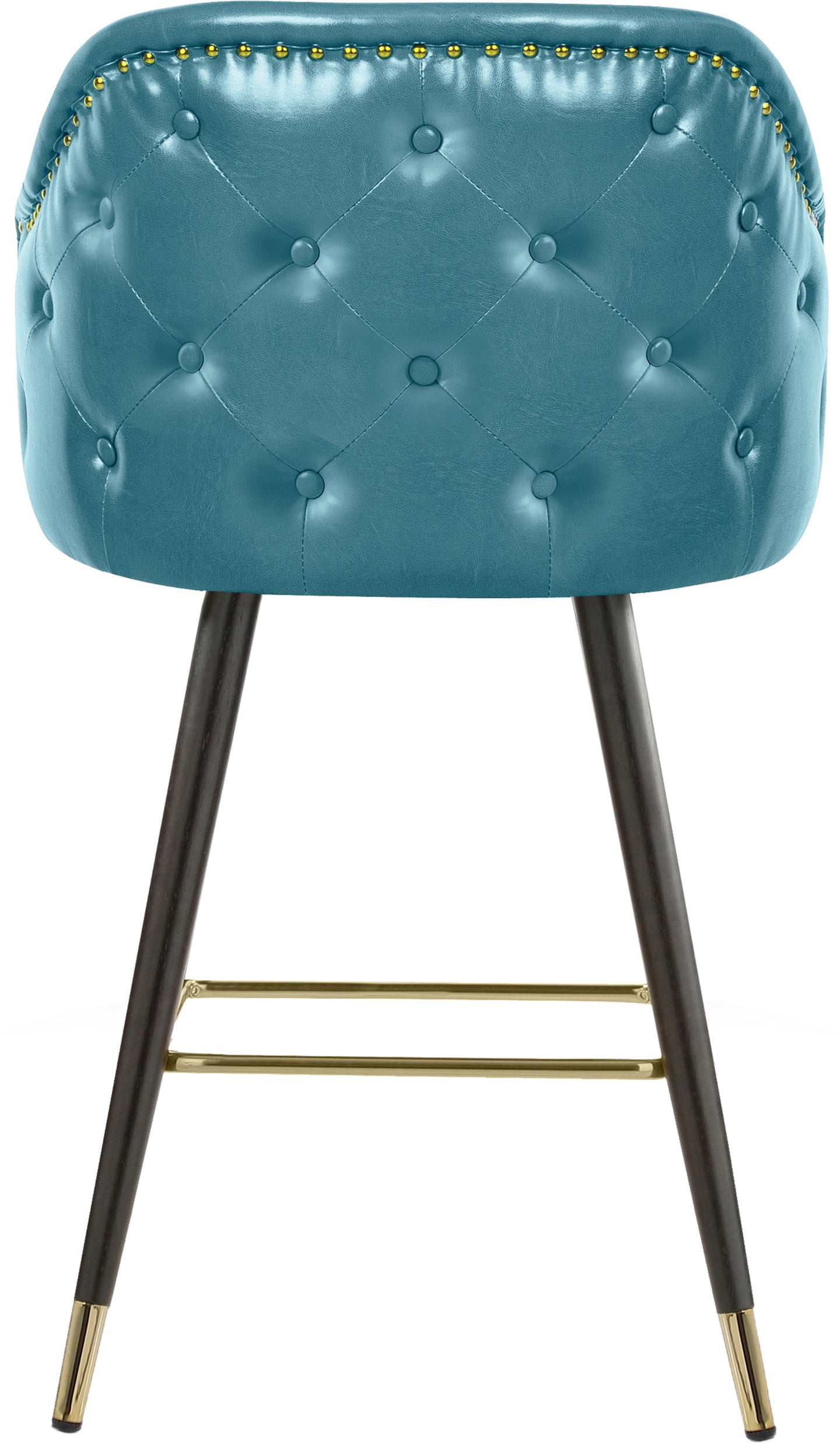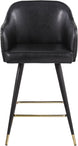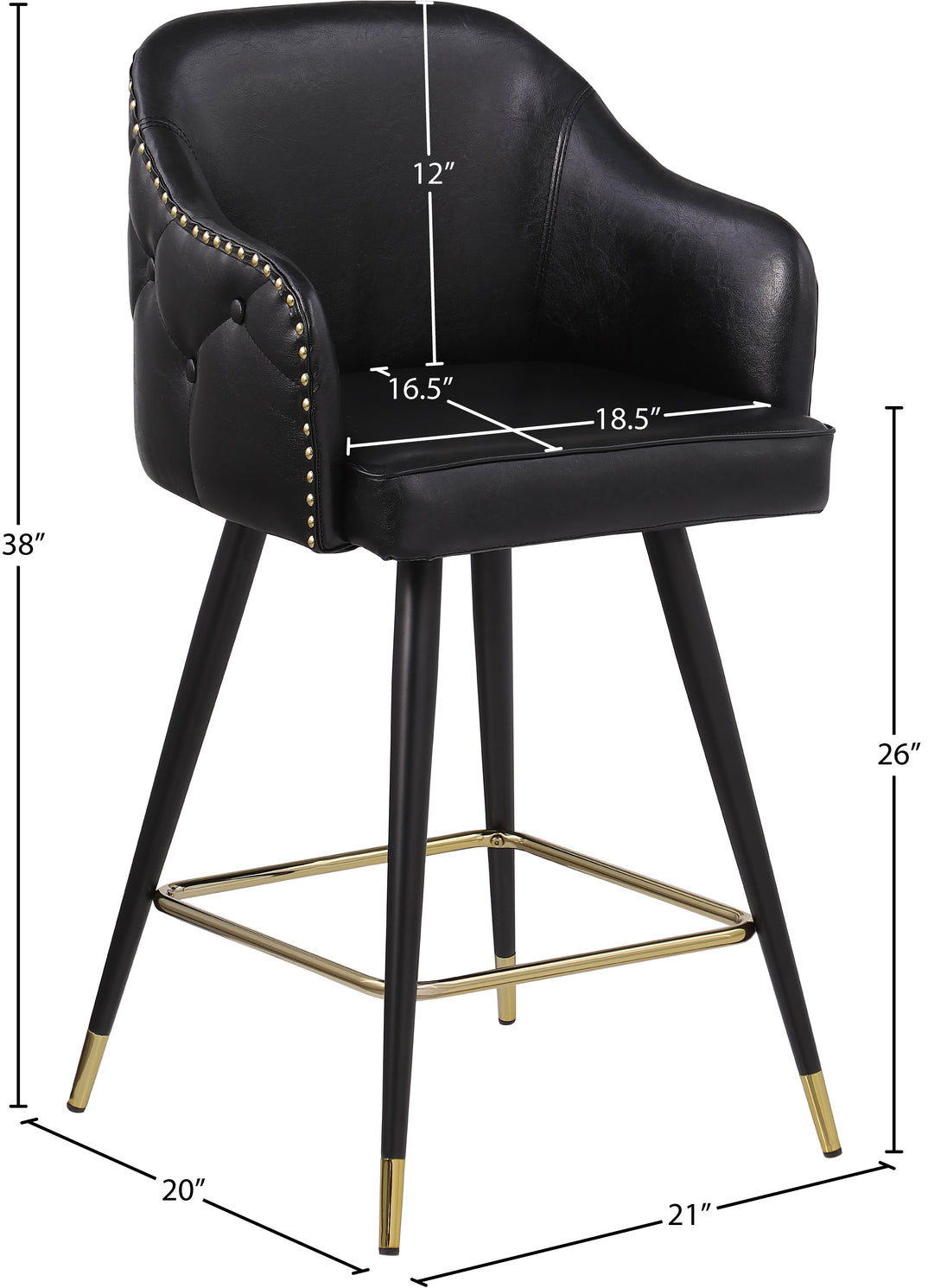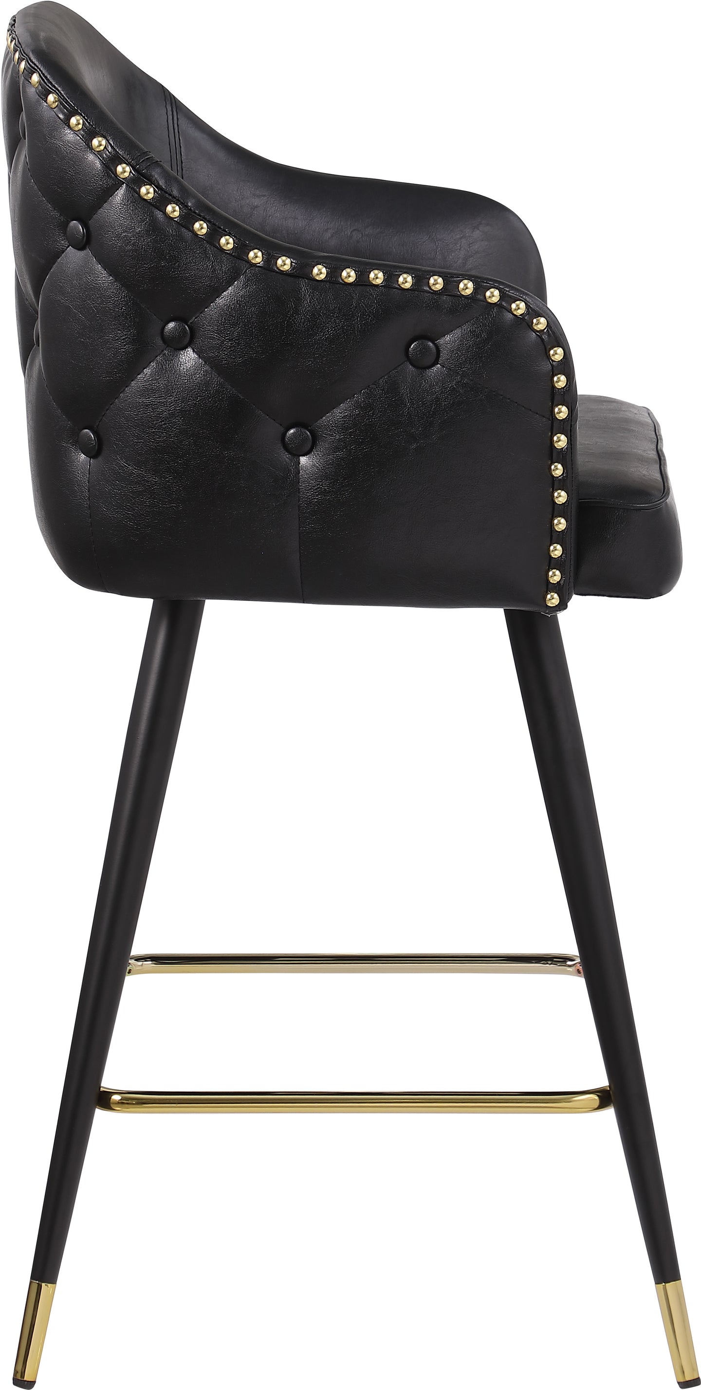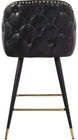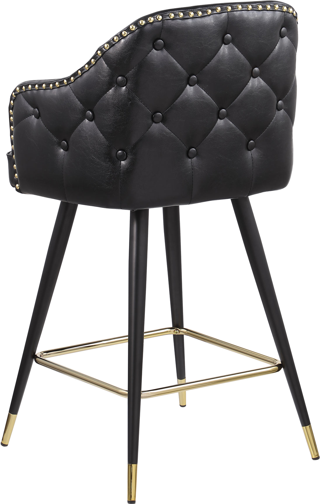 Traditional beauty comes to your home counter area with this Barbosa vegan leather counter stool. The rich, soft black vegan leather looks so real, folks will really think it is. The chair rests on matte black metal legs and has a gold footrest with gold caps on its tips for a modish finish. Deep tufting on the back of the seat adds a classic sense of refined style.