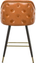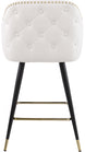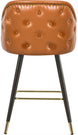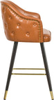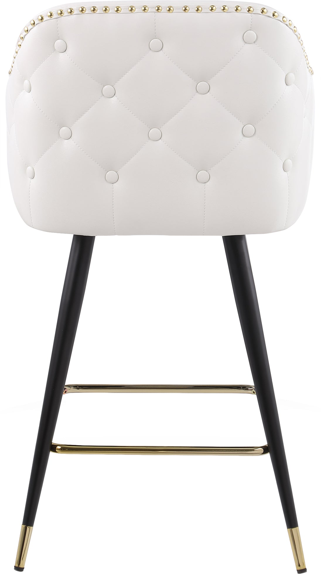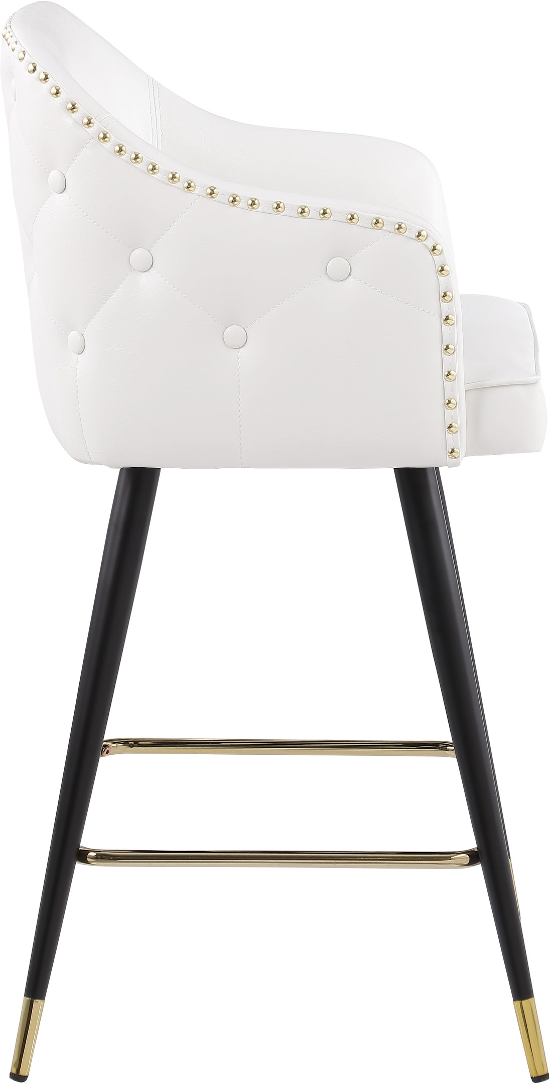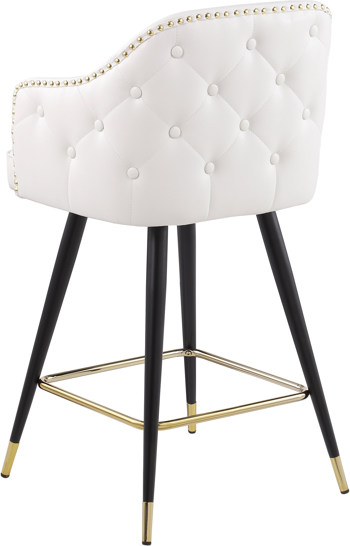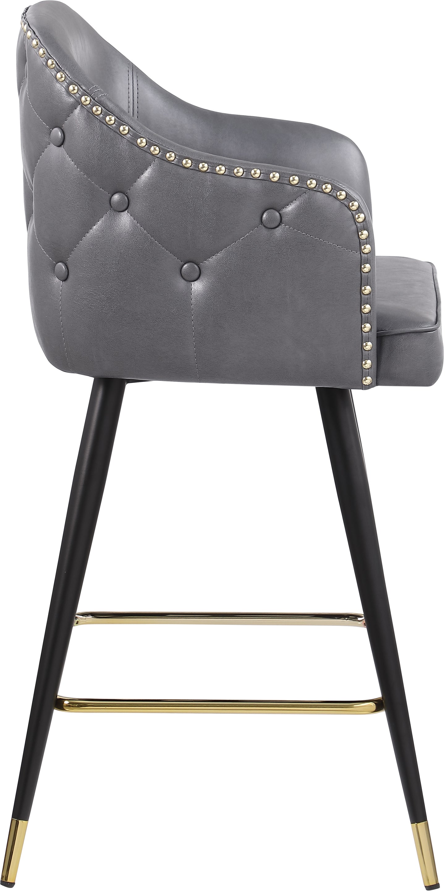 Traditional beauty comes to your home counter area with this Barbosa vegan leather counter stool. The rich, soft black vegan leather looks so real, folks will really think it is. The chair rests on matte black metal legs and has a gold footrest with gold caps on its tips for a modish finish. Deep tufting on the back of the seat adds a classic sense of refined style.