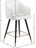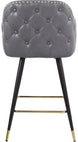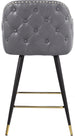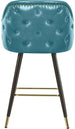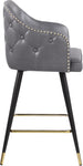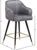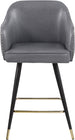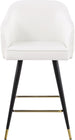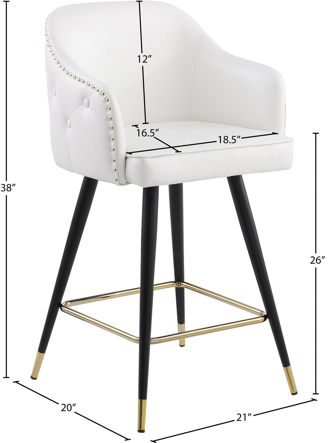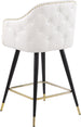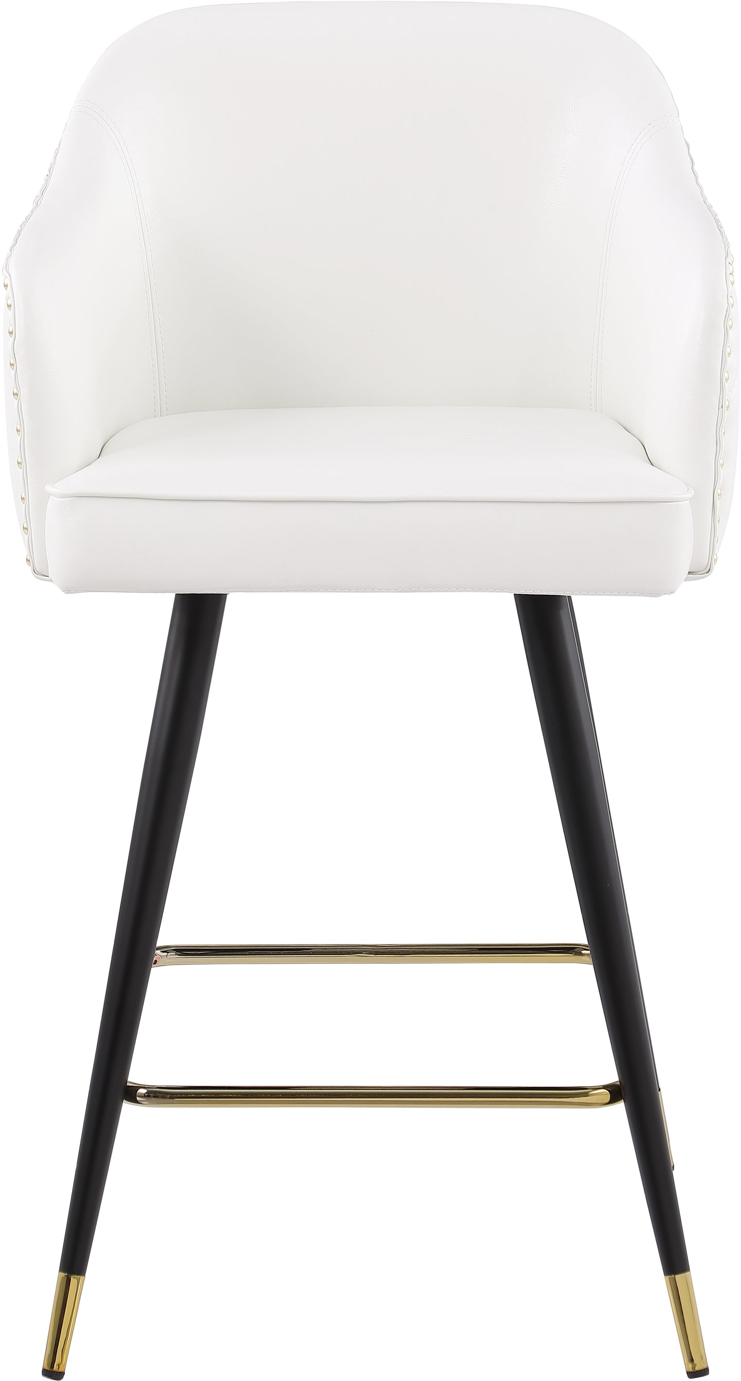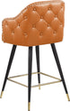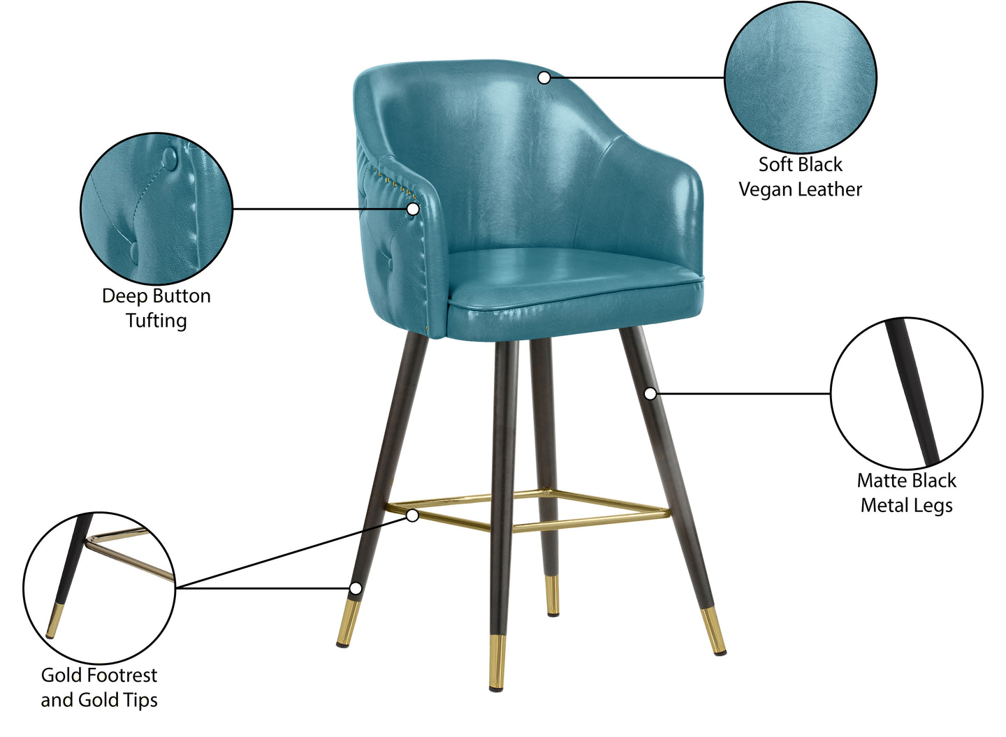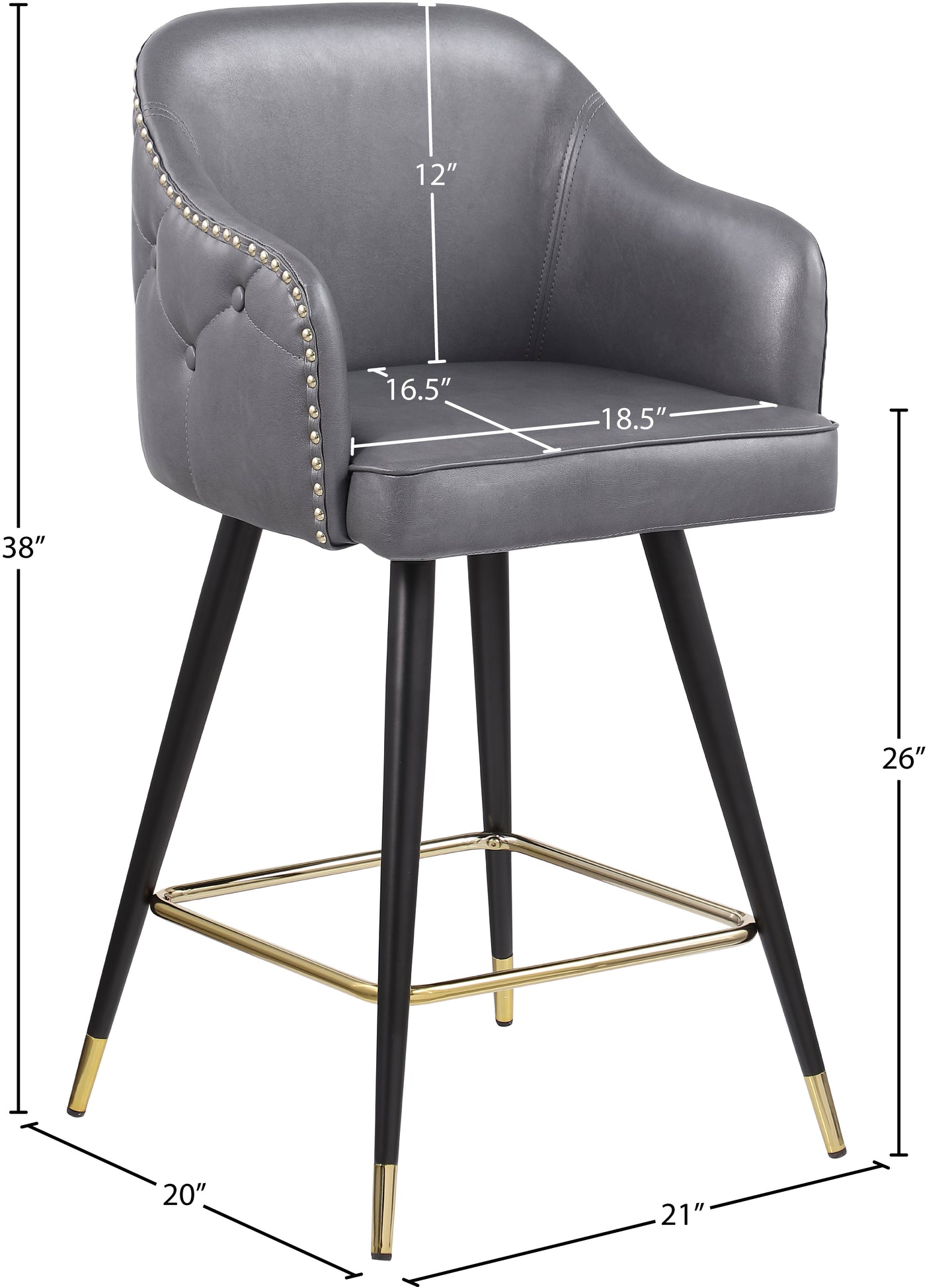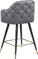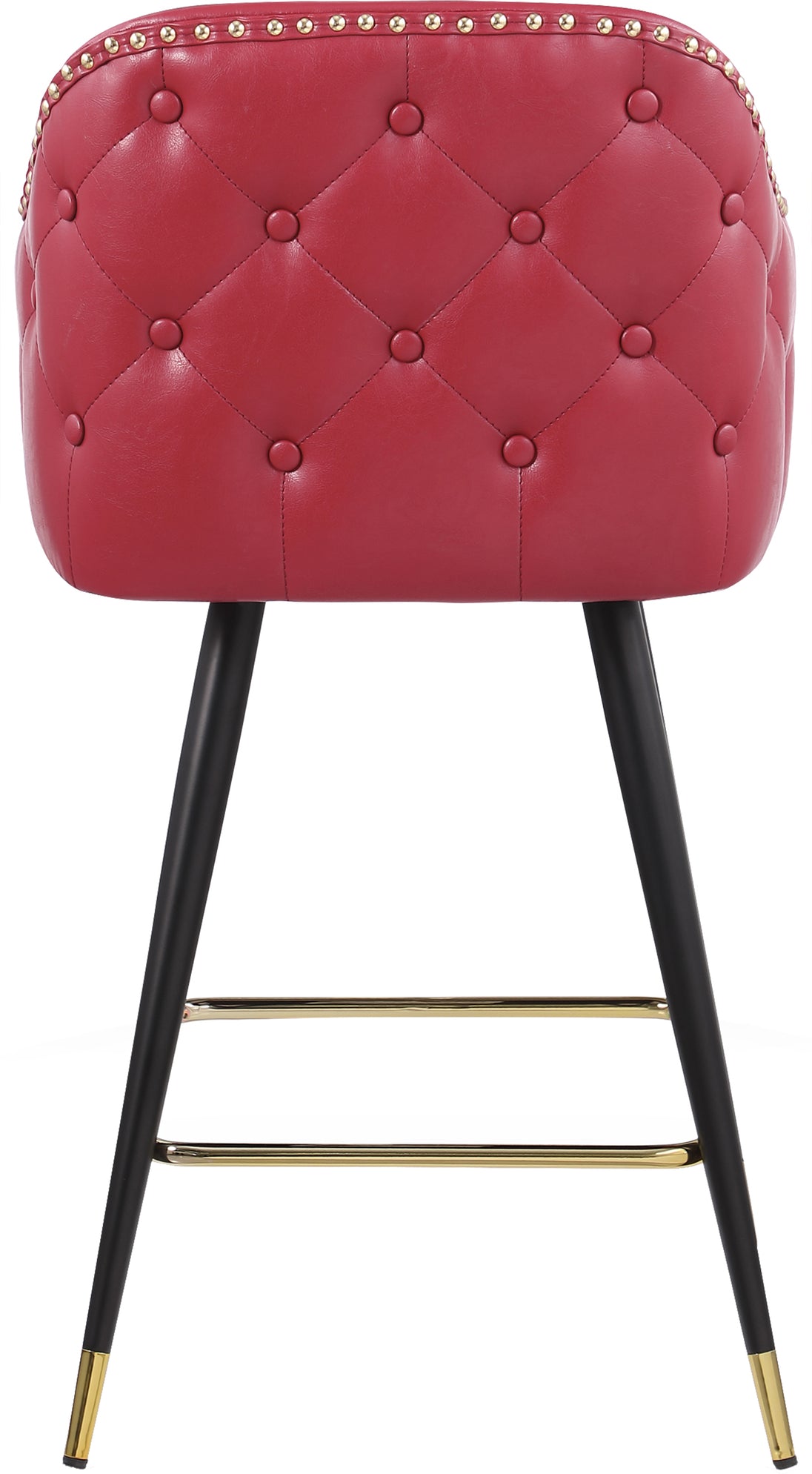 Traditional beauty comes to your home counter area with this Barbosa vegan leather counter stool. The rich, soft black vegan leather looks so real, folks will really think it is. The chair rests on matte black metal legs and has a gold footrest with gold caps on its tips for a modish finish. Deep tufting on the back of the seat adds a classic sense of refined style.