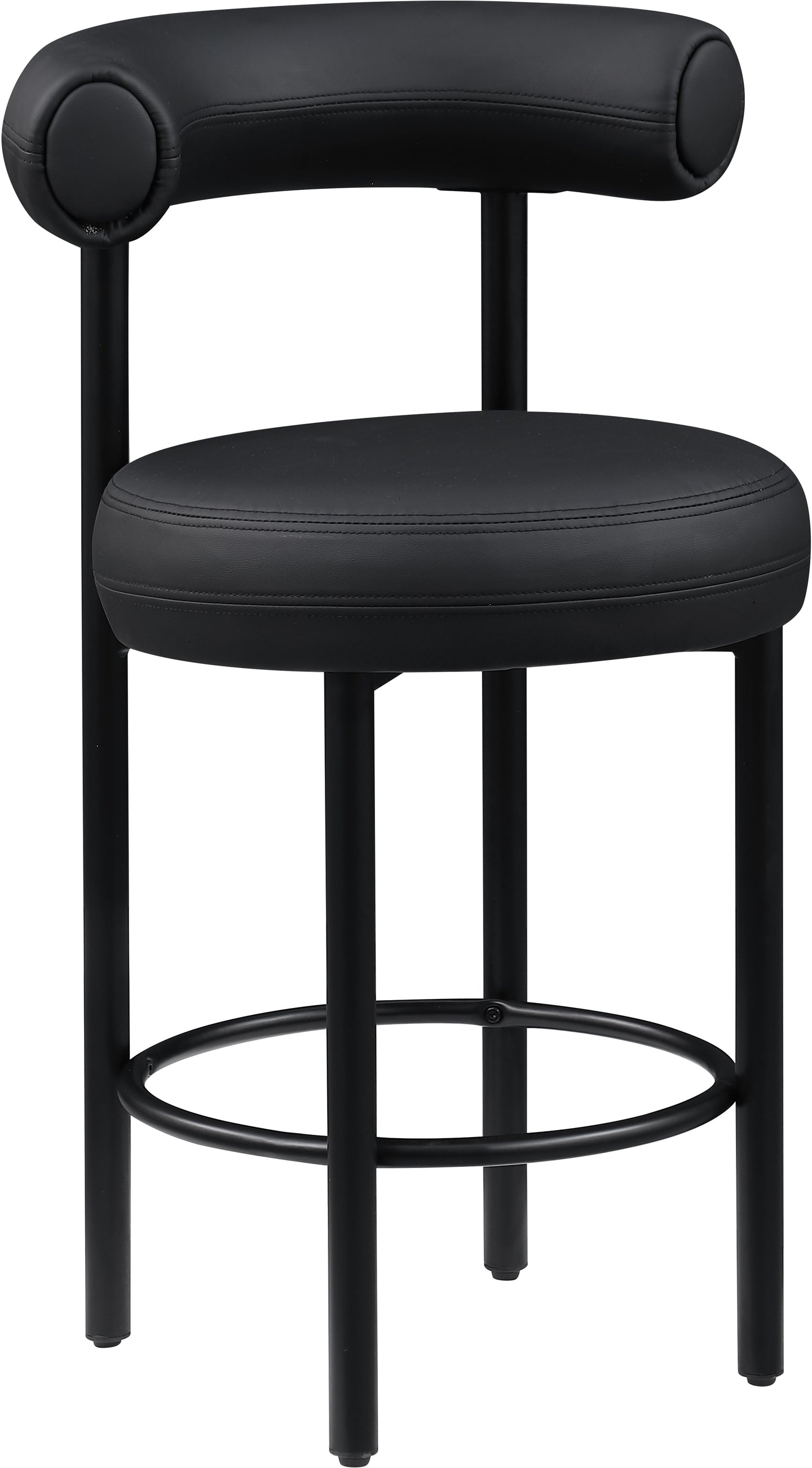 Home bar guests (or family and friends gathered round the kitchen counter) never want to leave when you seat them in this Bordeaux black vegan leather counter stool. Designed as an instant draw for the eye, this counter stool has a curvy back to provide support whether you're serving snacks or drinks. The upholstery is soft black vegan leather, so you have minimal worries about maintenance and upkeep. An iron metal frame with a black matte finish gives a contemporary look to this handsome stool.