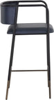 Simplicity is key with this effortlessly elegant counter stool that features a curved backrest. Stocked in bravo admiral and cognac faux leathers, and completed with a black metal frame and legs with antique brass foot caps. Made in India. With refined craftsmanship, this design was brought to life by skilled local artisans. By nature, these materials develop unique imperfections such as fissures, markings and colour variations for a truly one-of-a-kind piece. Handle With Care: This design has been crafted with faux leather. Faux leather is manufactured to reflect the natural characteristics of leather; as such, colour variations, markings, wrinkles, grooves, and light scratches are appreciated characteristics. No two pieces will be alike. Visit our Product Care page for more information on how to ensure the lasting beauty of this piece.