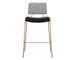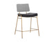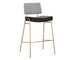 Contrasting materials bring this modern barstool to life. The seatback is stocked in chacha grey fabric, while the seat is upholstered with nightfall black faux leather. Finished with gold stainless steel legs. Handle With Care: This design has been crafted with faux leather. Faux leather is manufactured to reflect the natural characteristics of leather; as such, colour variations, markings wrinkles, grooves, and light scratches are appreciated characteristics. No two pieces will be alike. Visit our Product Care page for more information on how to ensure the lasting beauty of this piece.
