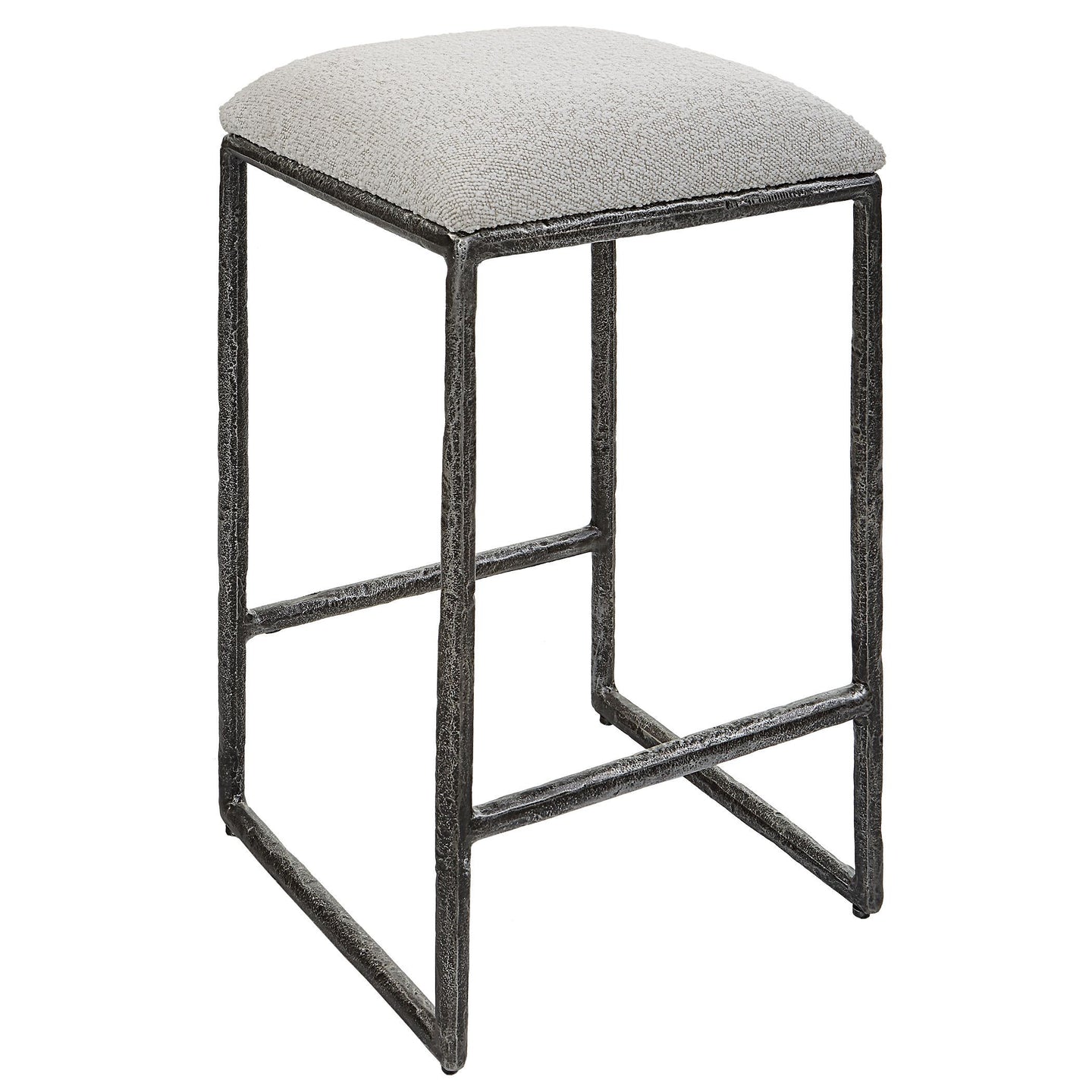 With Clean Contemporary Lines, This Open Frame Design Features A Textured Cast Iron Base In A Natural Distressed Charcoal Finish. Paired With A Tight Upholstered Seat In A Casual Ivory And Warm Gray Boucle Fabric. Seat Height Is 26".Product Features