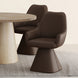 Bringing design to the forefront with these statement-making dining chairs. Fully upholstered seat, back and base in a monochrome look that exudes elegance. The automatic return swivel seat adds another elevated element to the design of these gorgeous chairs and adds functionality to the piece. Perfect in a formal dining space, as a lounge chair, or to bring sophistication into your everyday dining.