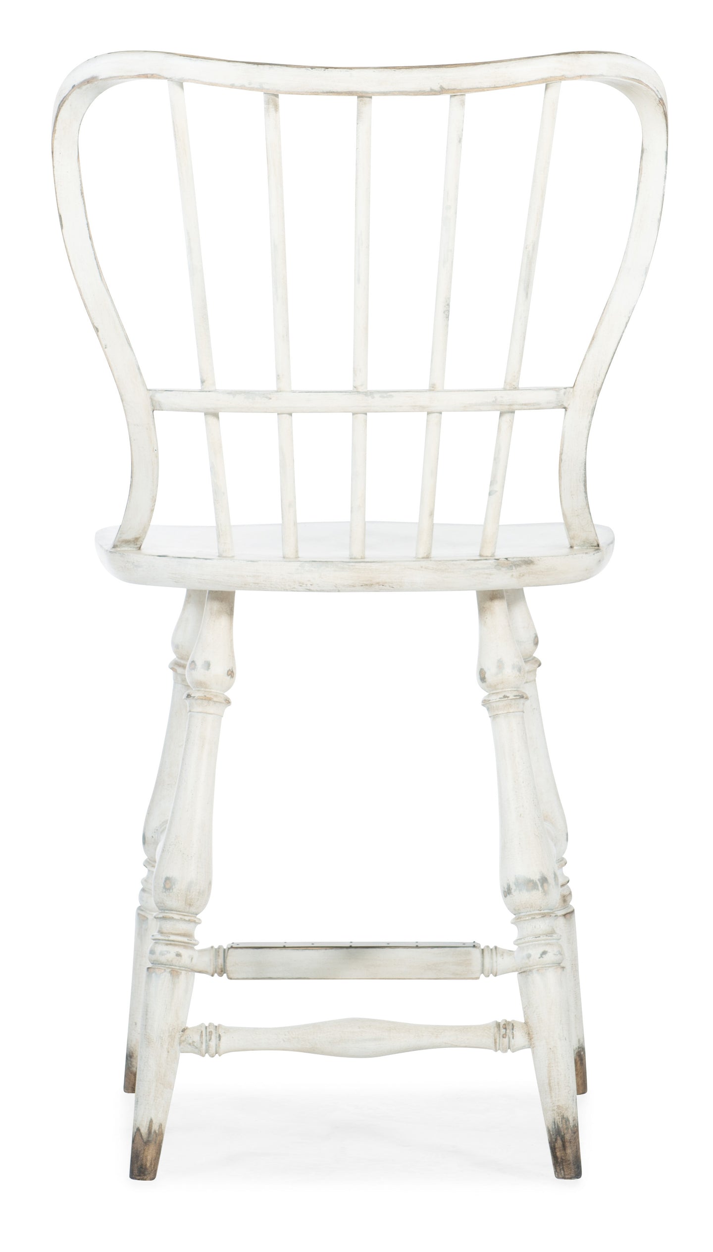 With a casual chic spin on classic European farmhouse and cottage style, the graceful silhouette of the Ciao Bella Spindle Back Counter Stool is destined to be a favorite of family and guests alike. The compelling Vintage Chalky White finish with a gently worn dry antique paint patina has the charm of chalk paint finishes. 42 _ inches high.