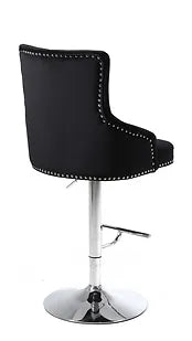 Velvet Bar Stool with Deep Tufting, Polished Chrome Base, Nail Head Details. Adjustable Height from 42"-50"