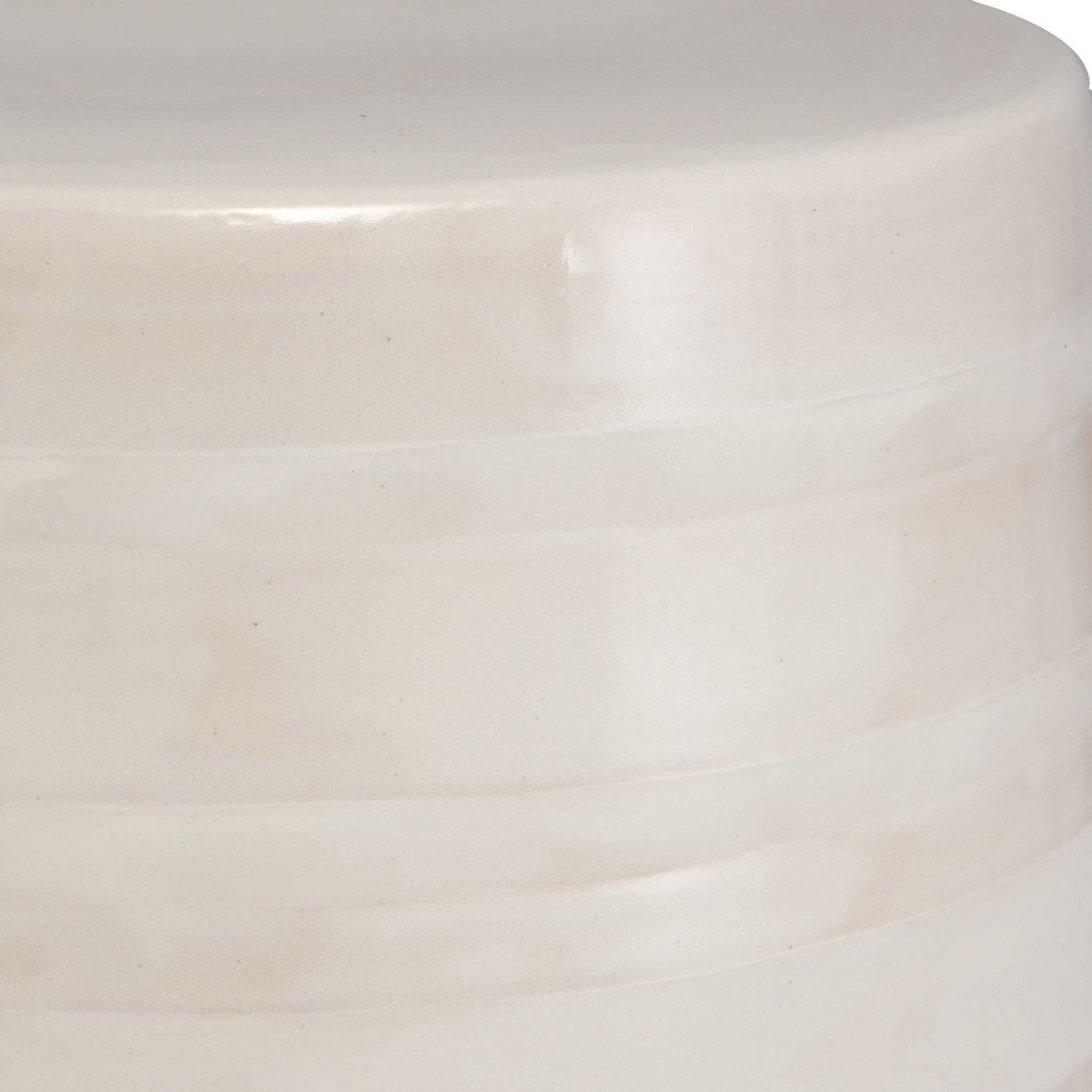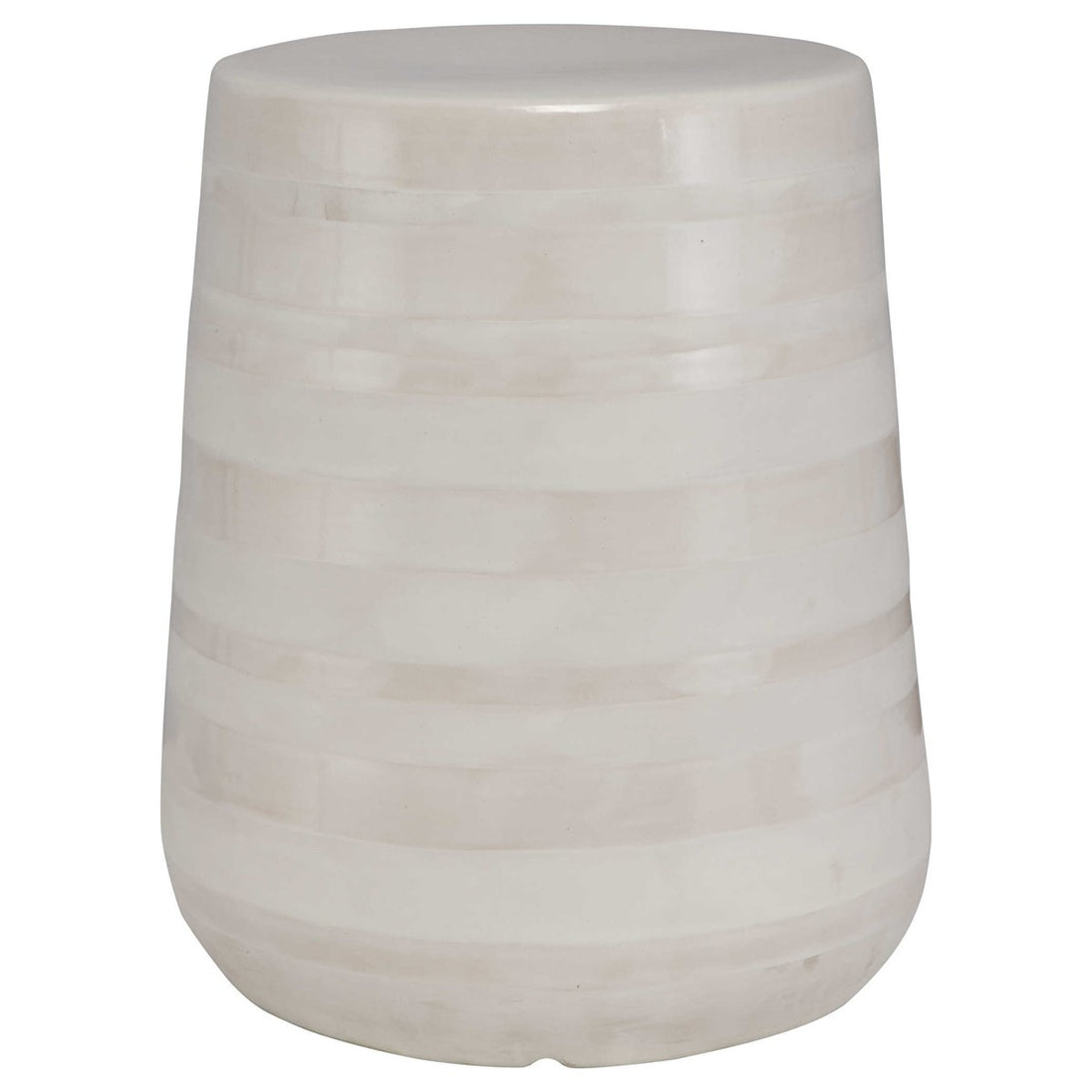 Inspired by tonal landscapes, the Desert Plains Garden Stool features a striped effect from gloss and matte white glazes. May be used outdoors, but protection from freezing temperatures is recommended.