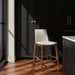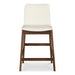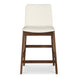 A sophisticated union of natural beauty and refined comfort, the Deco counter stool's adaptable design seamlessly complements both formal and casual settings. Its solid walnut frame imparts a warm, organic ambiance while providing a sturdy and supportive foundation. Upholstered in sleek, easy-to-clean vegan leather, this counter stool exemplifies versatility and effortless elegance.