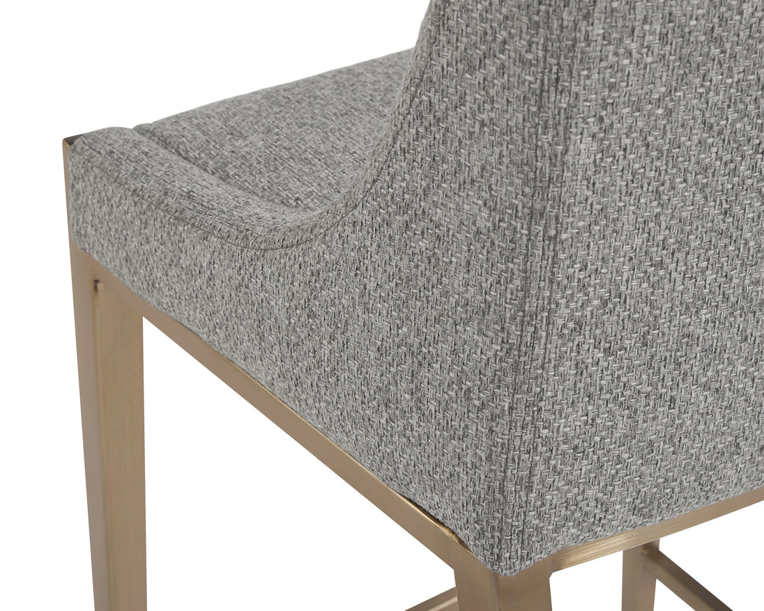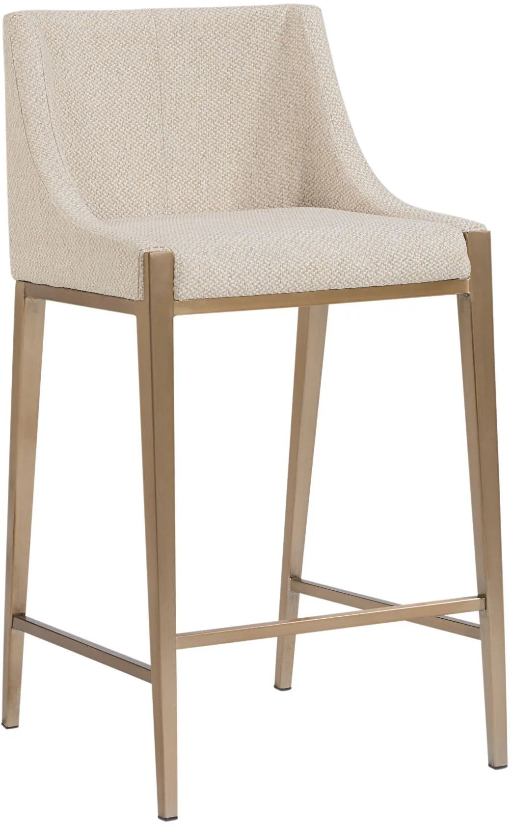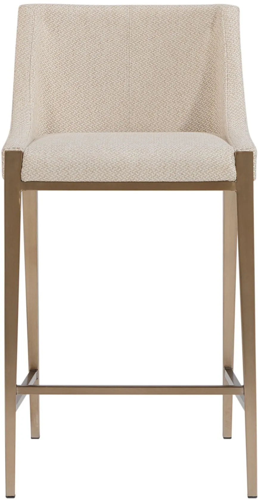 With its clean and modern design, this counter stool is a stunning addition to any dining or kitchen space. Stocked in our textured monument oatmeal fabric and completed with powder coated stainless steel legs in an antique brass finish. Also available in monument pebble fabric.