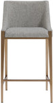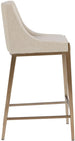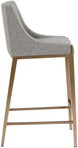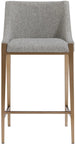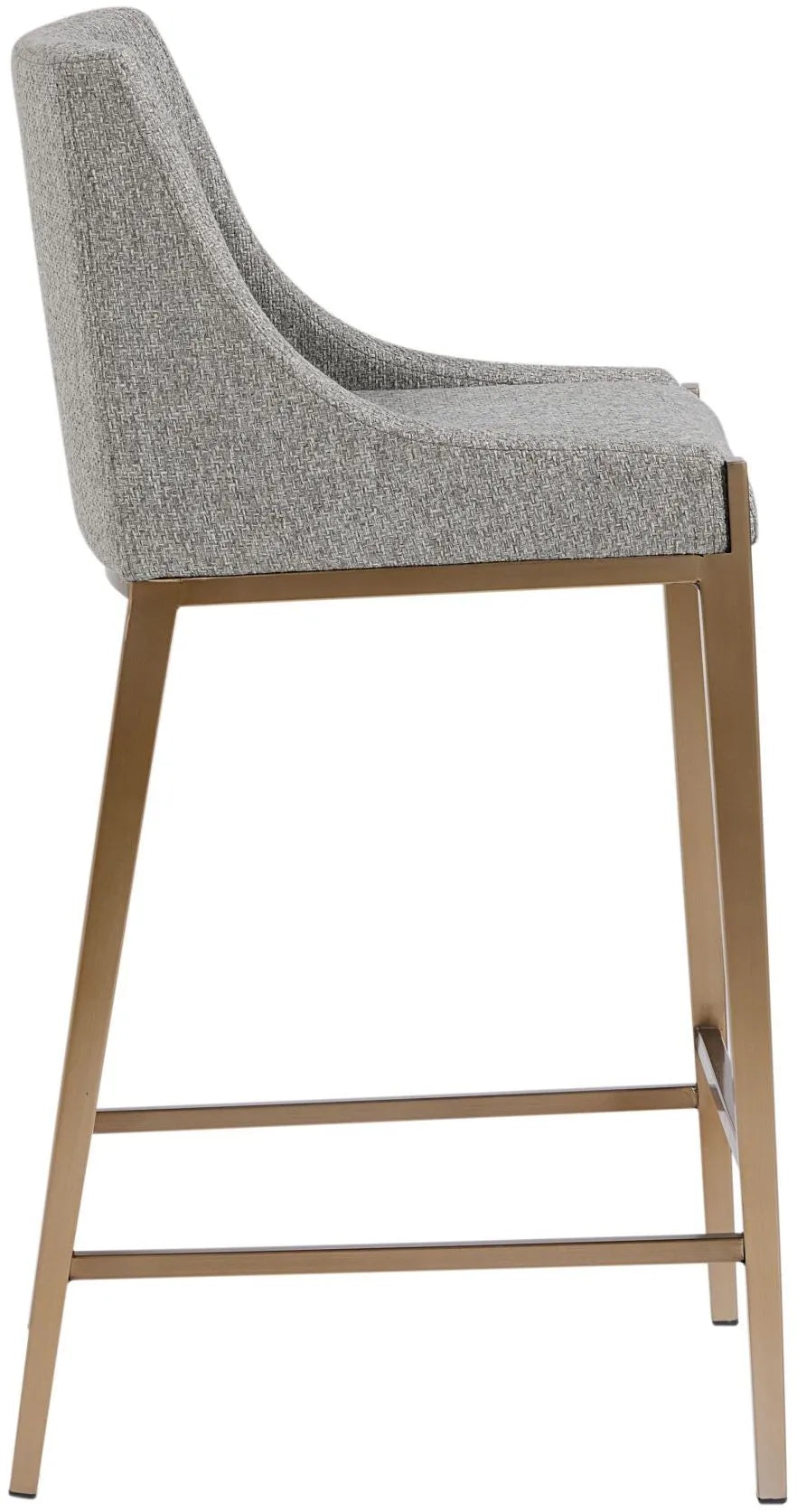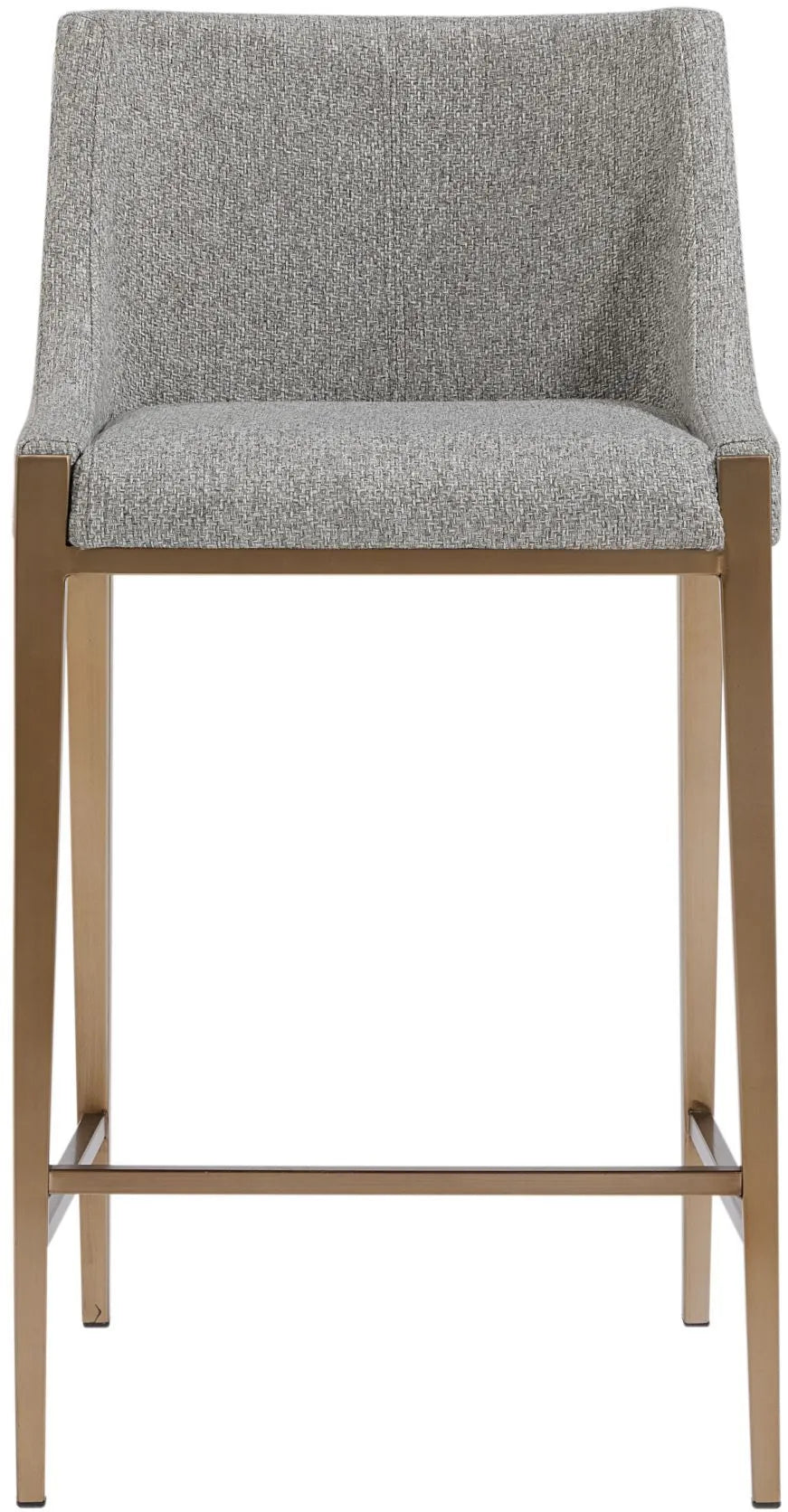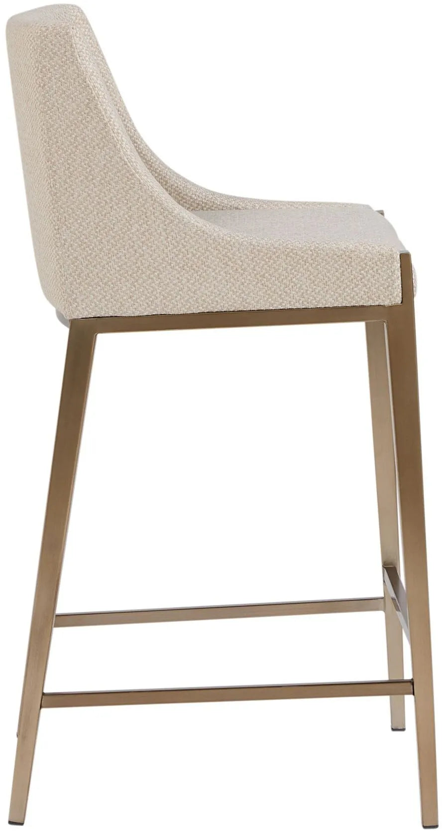 With its clean and modern design, this counter stool is a stunning addition to any dining or kitchen space. Stocked in our textured monument oatmeal fabric and completed with powder coated stainless steel legs in an antique brass finish. Also available in monument pebble fabric.