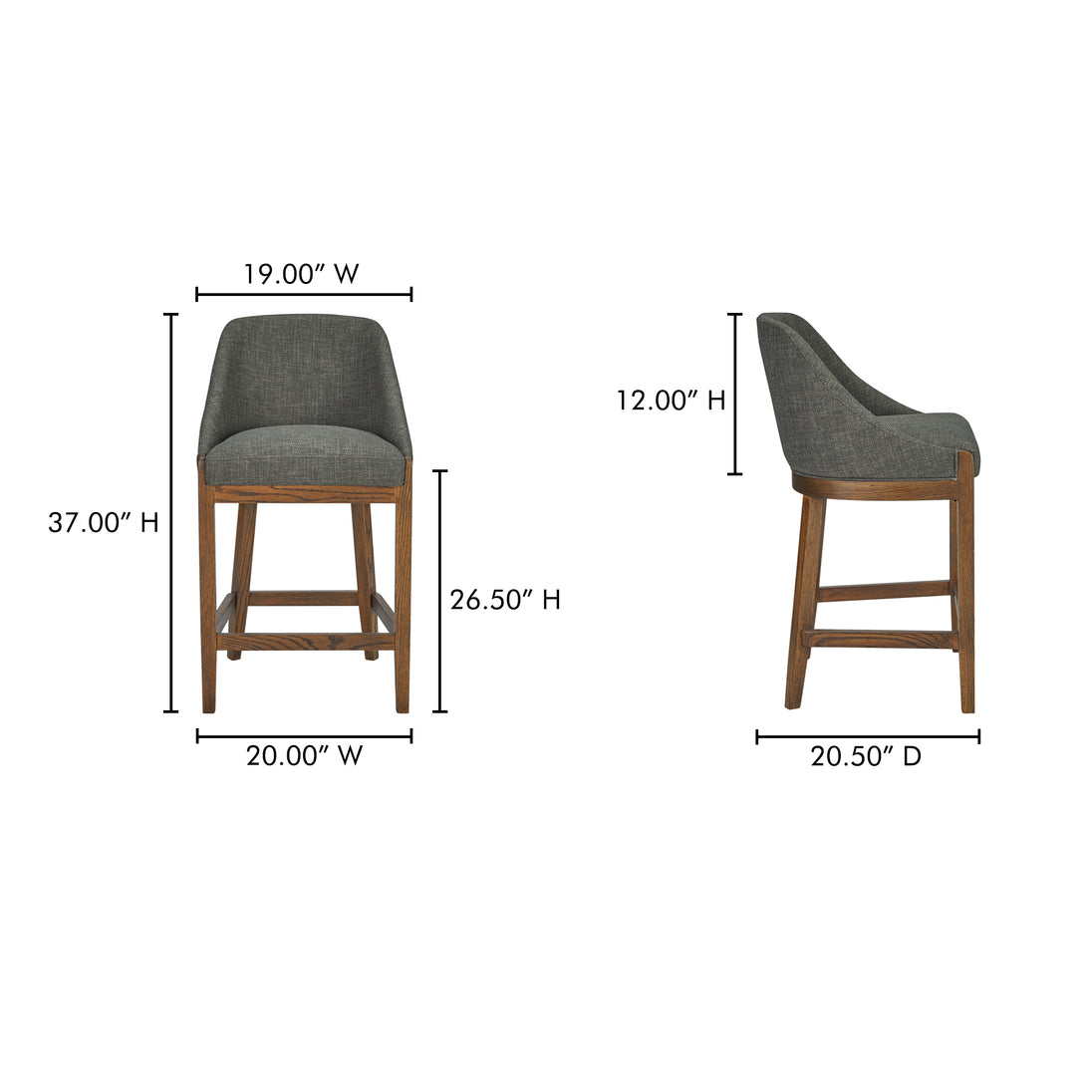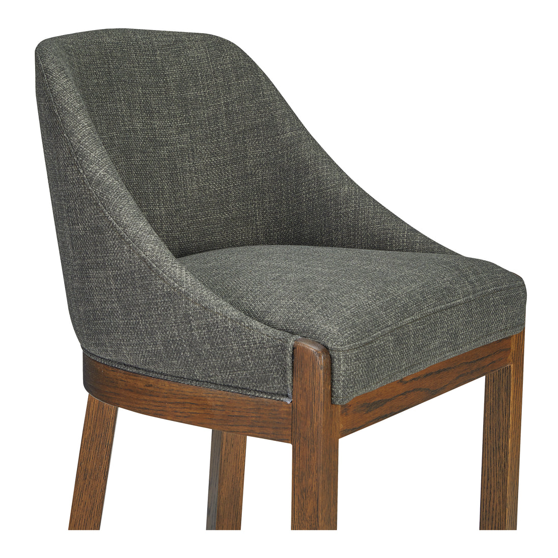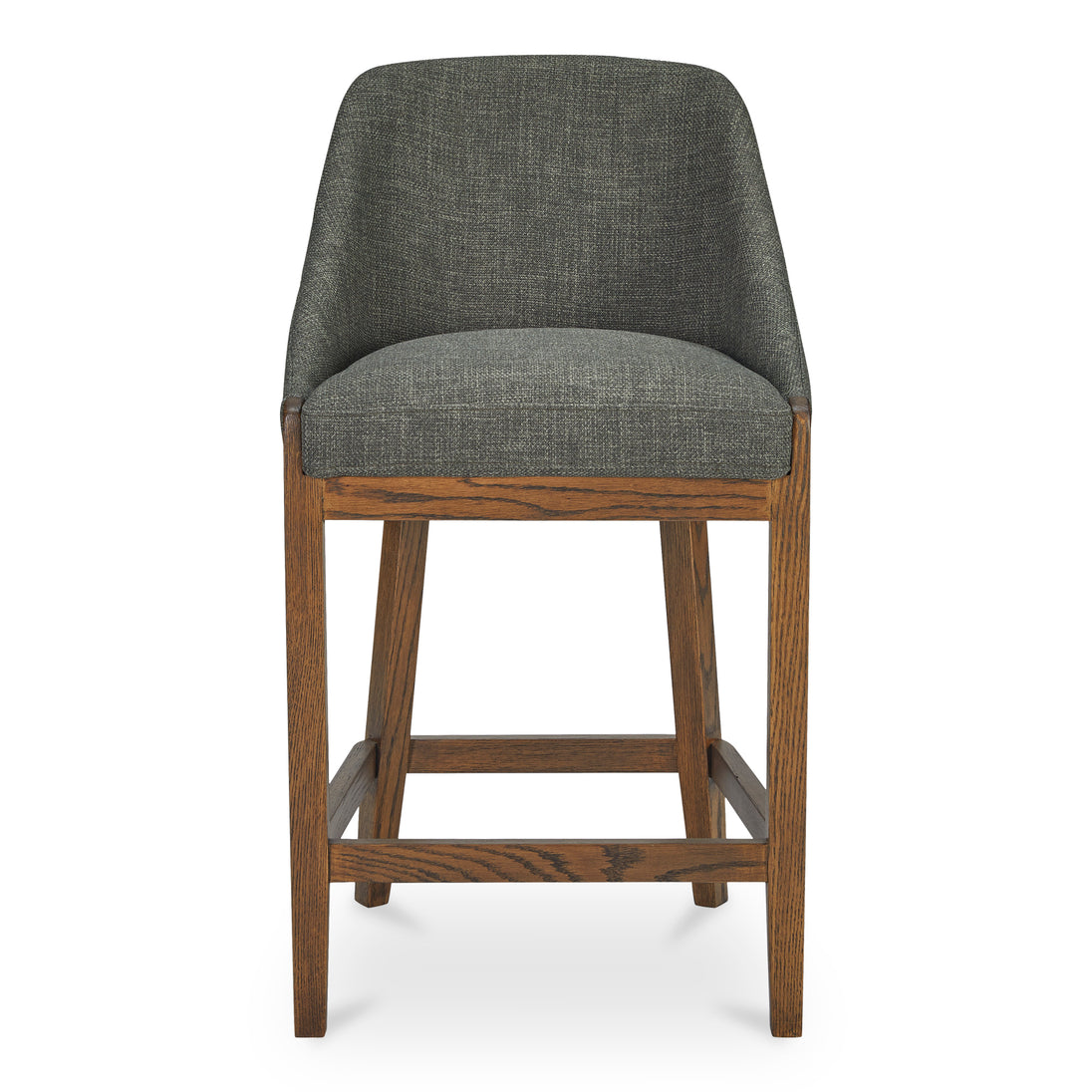The Edward counter stool is an ideal balance of comfort and sophistication, featuring a traditional silhouette with a generously padded seat and curved backrest. Crafted from expressive solid oak in a dark espresso finish for a rustic touch and upholstered in easy-to-clean, stain-resistant performance fabric, this versatile piece seamlessly combines an enduring style with everyday livability.