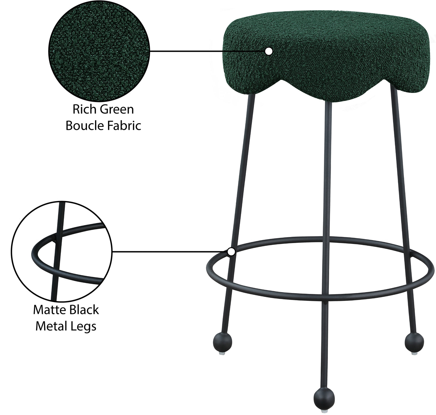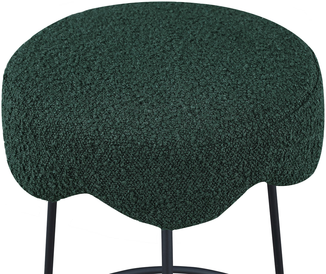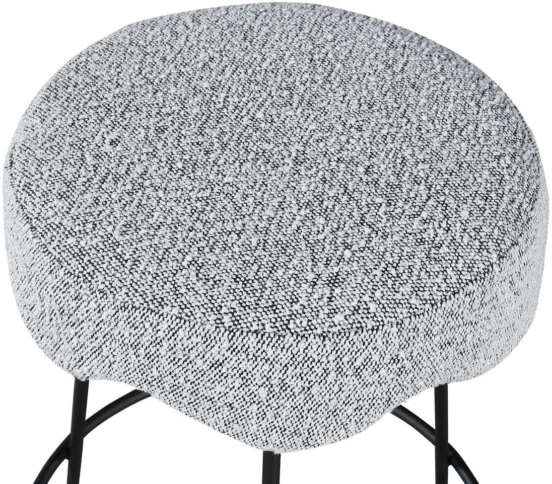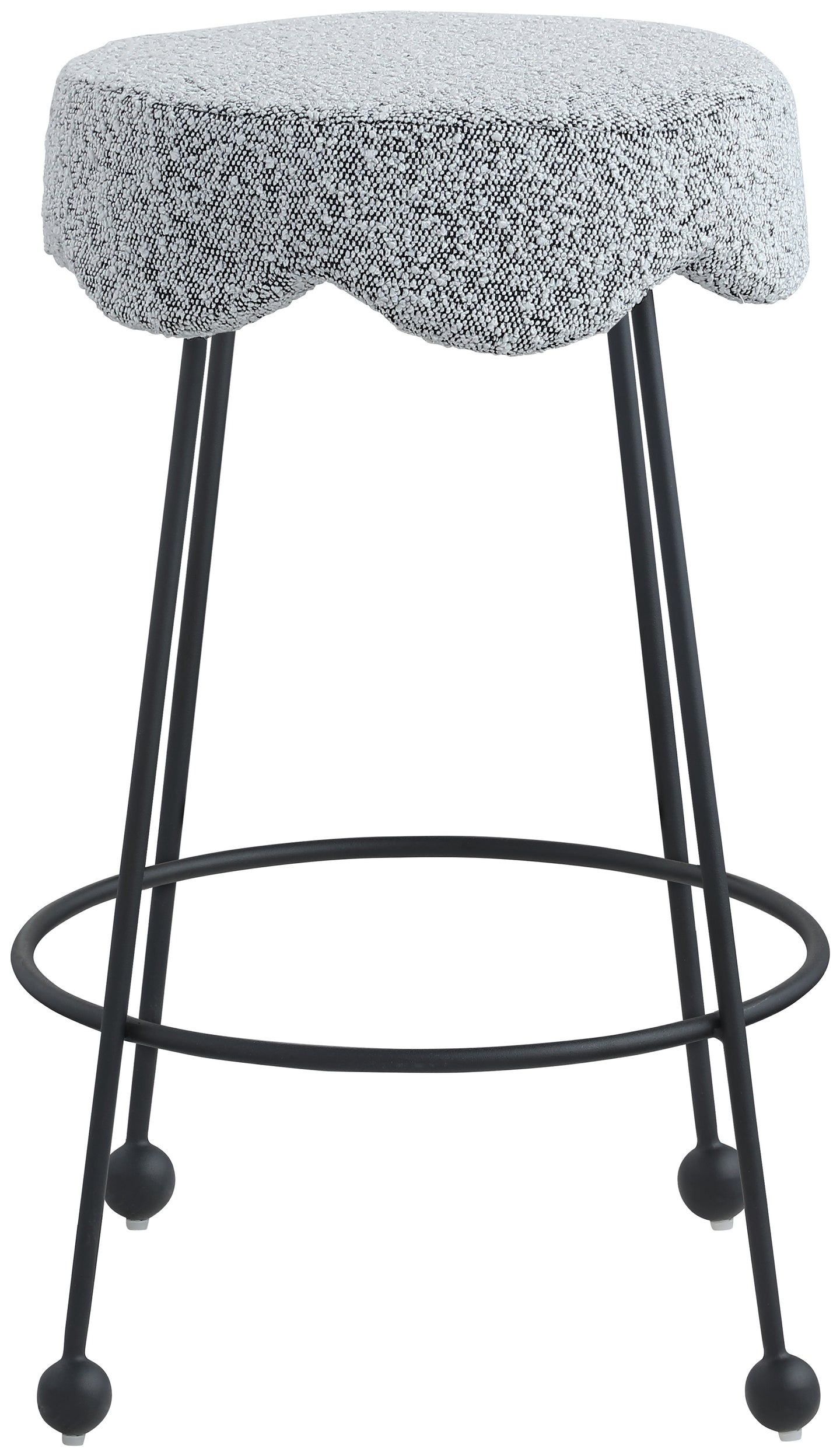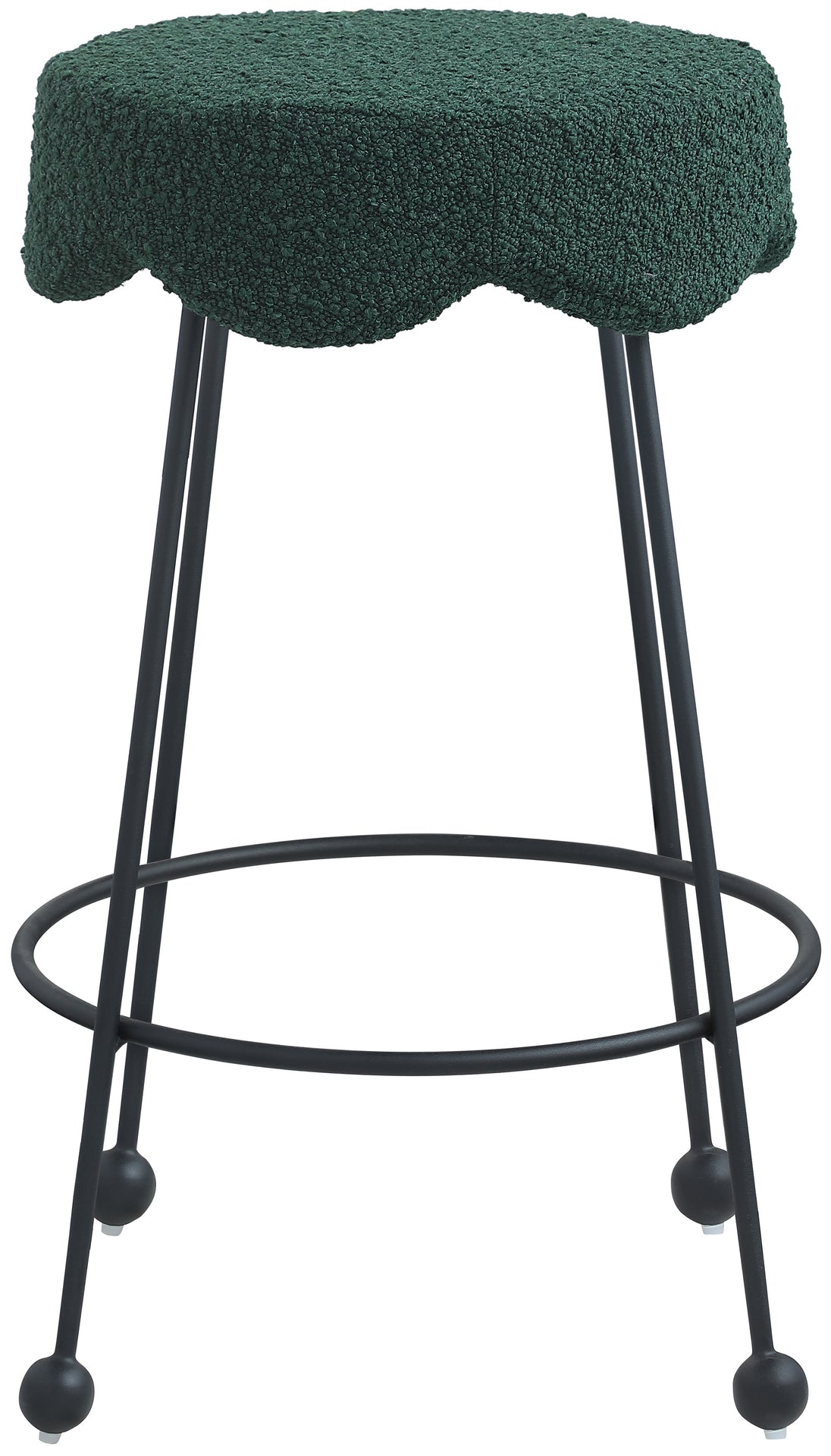 Give your dining area a unique touch with this Fleur black fabric counter stool. Its rich black boucle fabric seat is padded with foam, providing comfort while you're sitting, and its matte black metal legs ensures sturdiness and durability. A round footrest encircles its three metal legs, giving you a place to rest your feet while sitting at your breakfast counter or bar. A contemporary design ensures this counter stool matches your existing home decor.