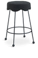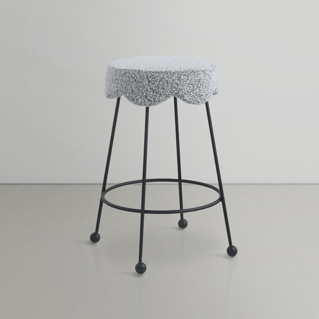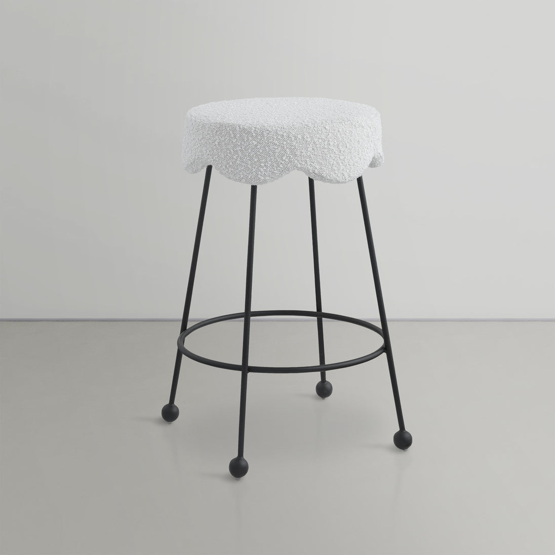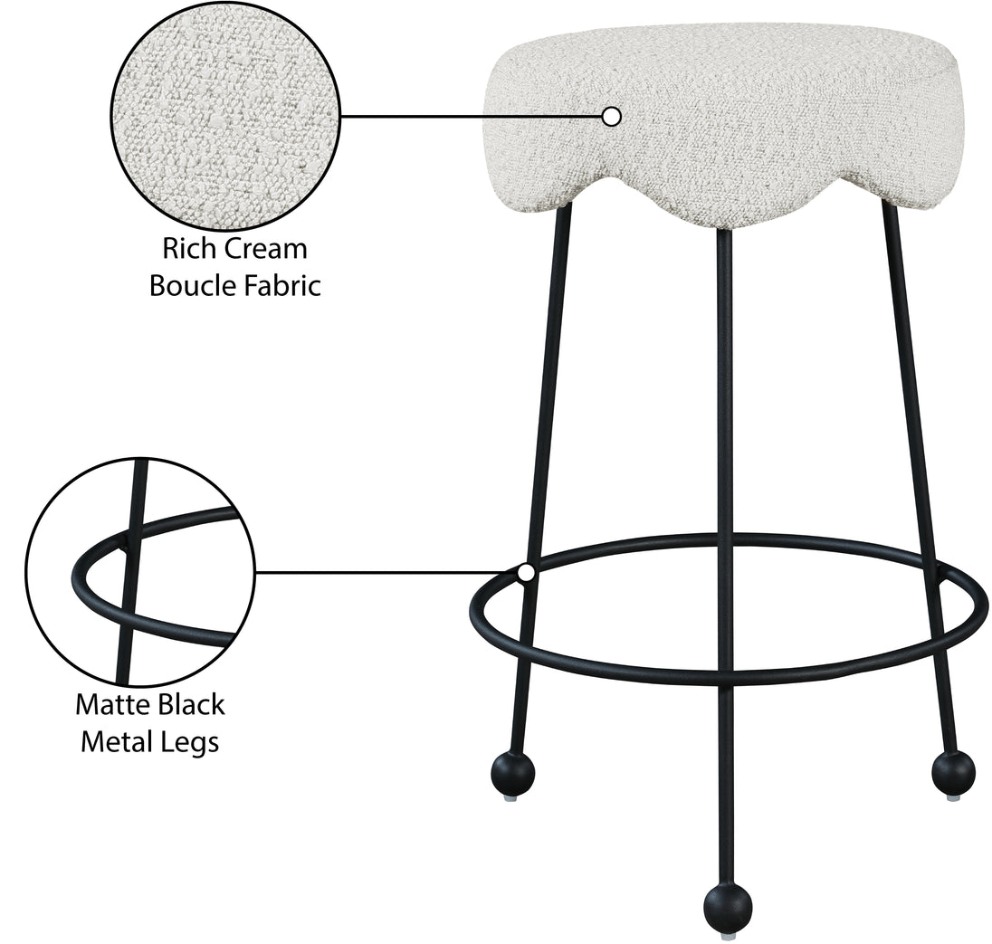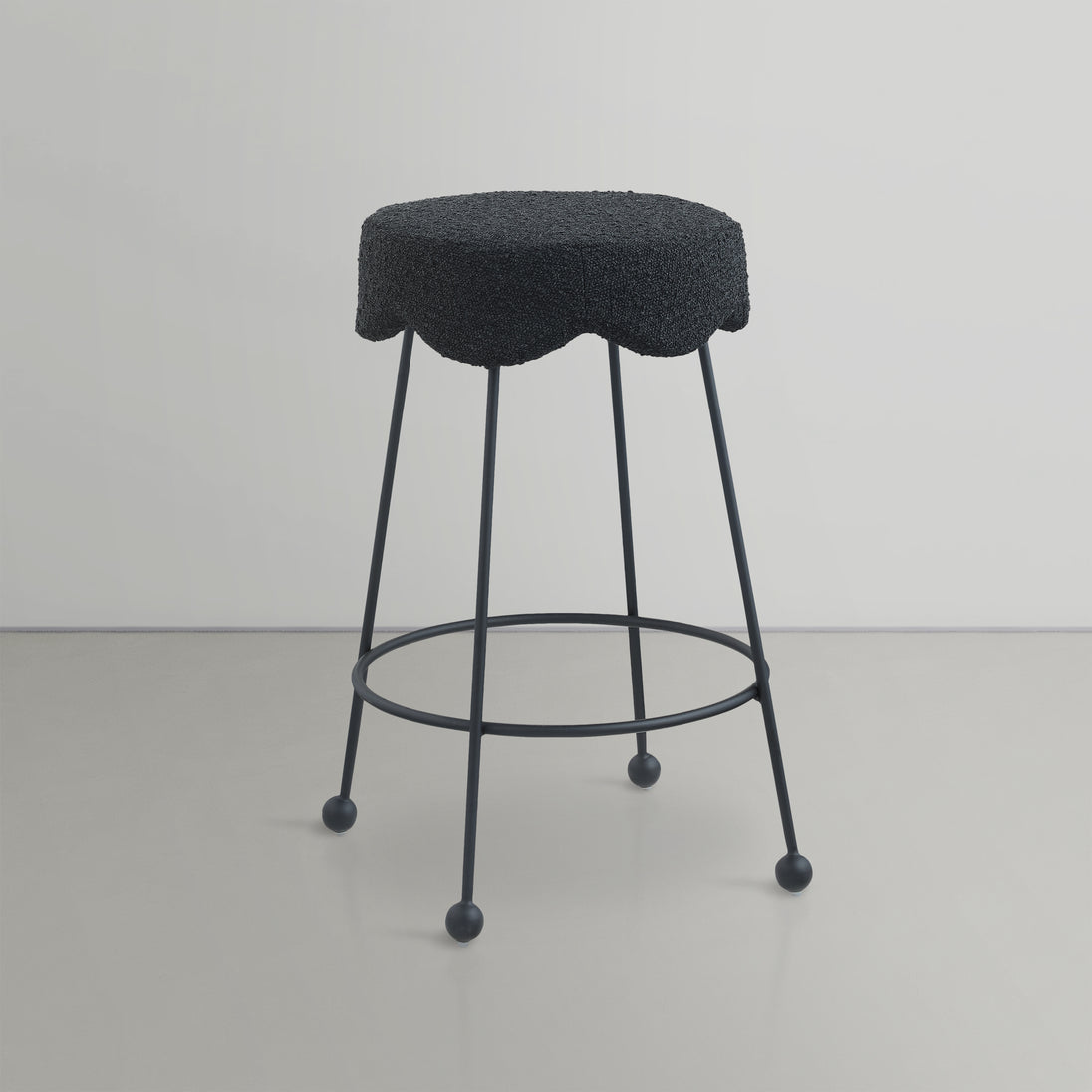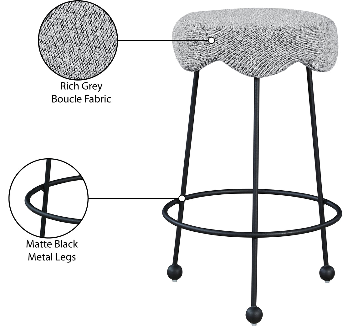 Give your dining area a unique touch with this Fleur black fabric counter stool. Its rich black boucle fabric seat is padded with foam, providing comfort while you're sitting, and its matte black metal legs ensures sturdiness and durability. A round footrest encircles its three metal legs, giving you a place to rest your feet while sitting at your breakfast counter or bar. A contemporary design ensures this counter stool matches your existing home decor.